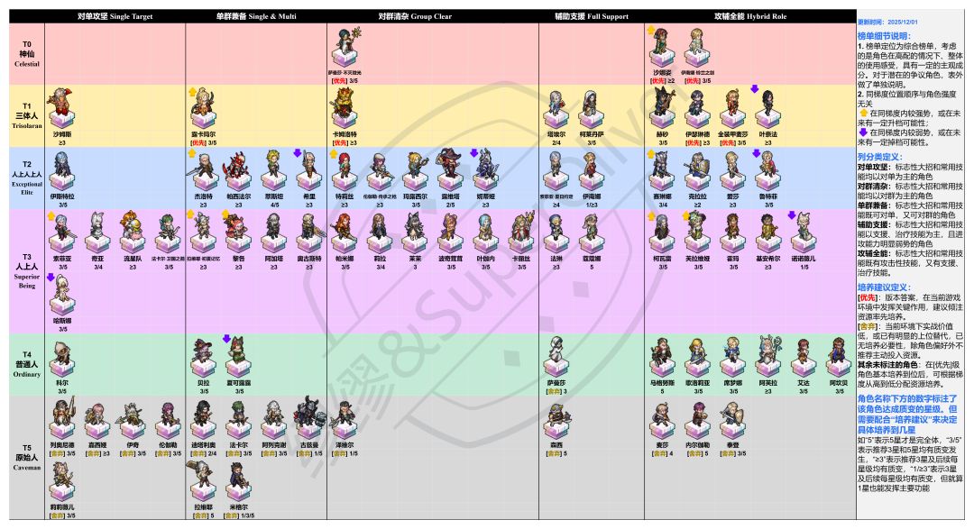 其余未标注的角色:在[优先]级角色基本培养到位后,可根据梯度从高到低分配资源培养。