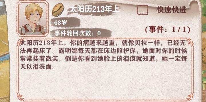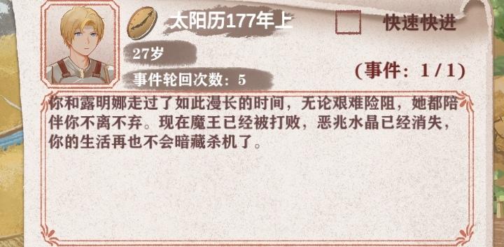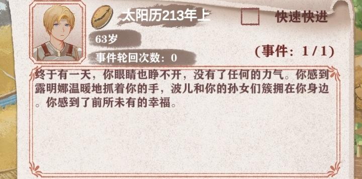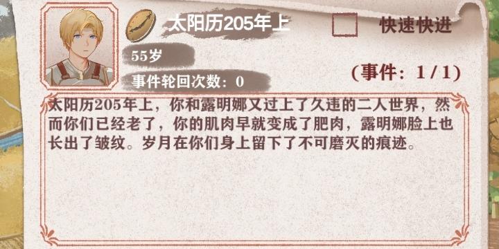 · 你和露明娜又过上了久违的二人世界,然而你们已经老了,你的肌肉早就变成了肥肉,露明娜脸上也长出了皱纹。岁月在你们身上留下了不可磨灭的痕迹。