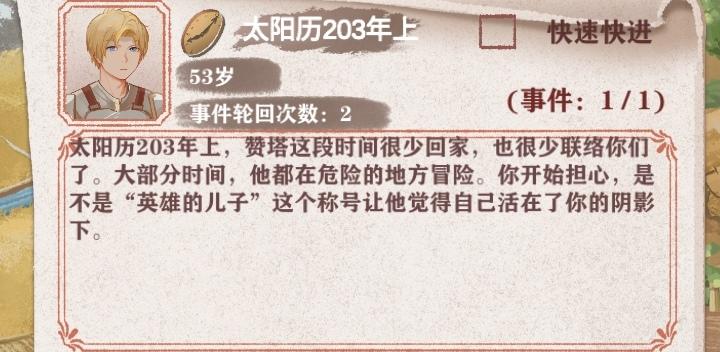 · 赞塔这段时间很少回家,也很少联络你们了。大部分时间,他都在危险的地方冒险。你开始担心,是不是“英雄的儿子”这个称号让他觉得自己活在了你的阴影下。