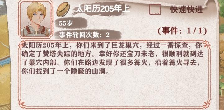· 为了逃离山洞,你们必须击败古龙。先是试探性地进攻了几次,你发现古龙强大得不可思议,或许也是自己没有年轻时候的实力了。你决定和赞塔一起进攻,你左翼,赞塔负责右翼。露明娜在后面支援。