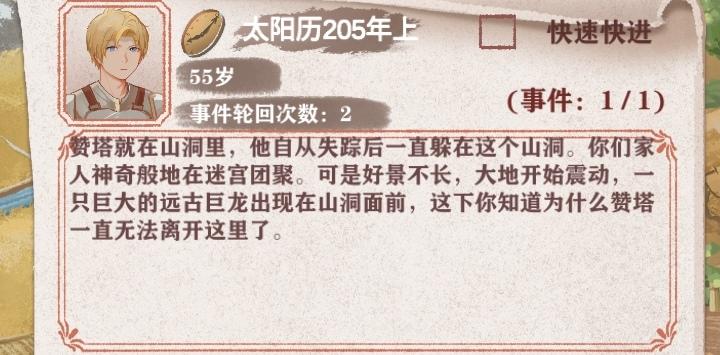 · 赞塔就在山洞里,他自从失踪后一直躲在这个山洞。你们家人神奇般地在迷宫团聚。可是好景不长,大地开始震动,一只巨大的远古巨龙出现在山洞面前,这下你知道为什么赞塔一直无法离开这里了。