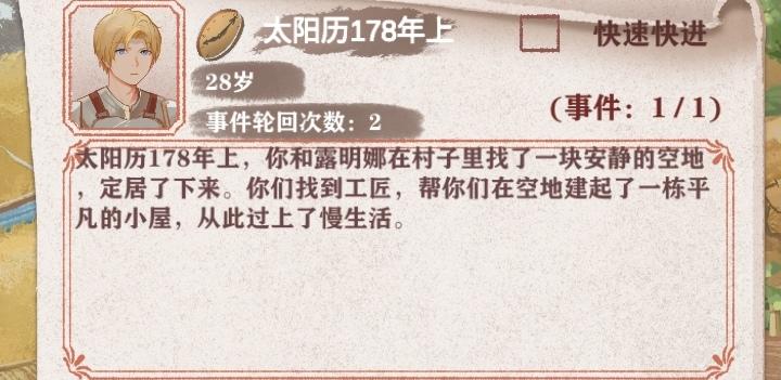 · 你和露明娜在村子里找了一块安静的空地定居了下来。你们找到工匠,帮你们在空地建起了一栋平凡的小屋,从此过上了慢生活。