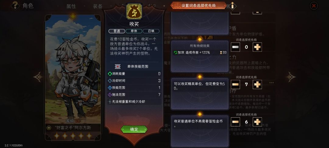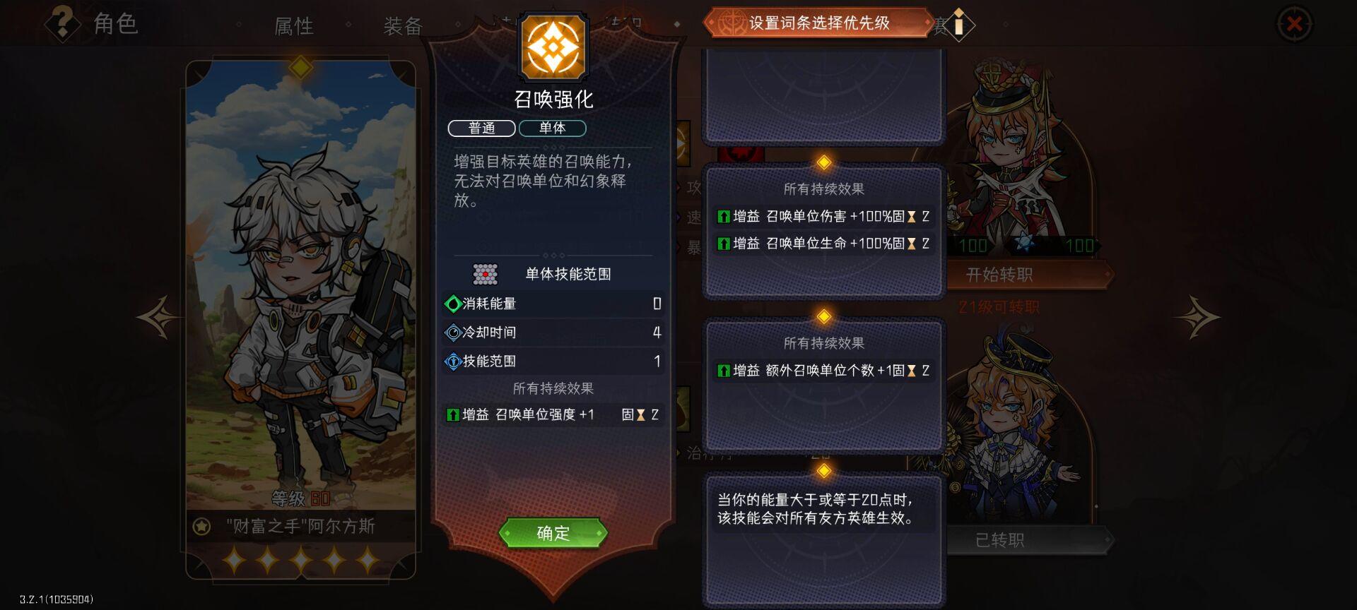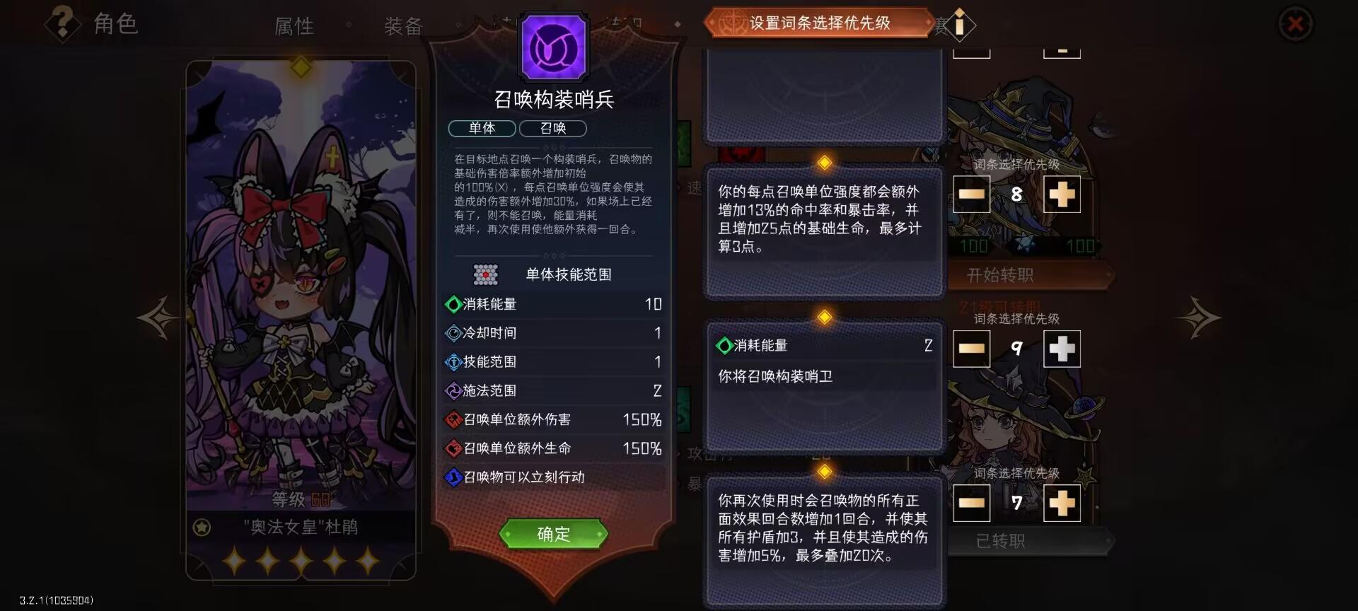 技能优先级:如图,50倍率>攻击次数>100额外>目标>射程>50额外