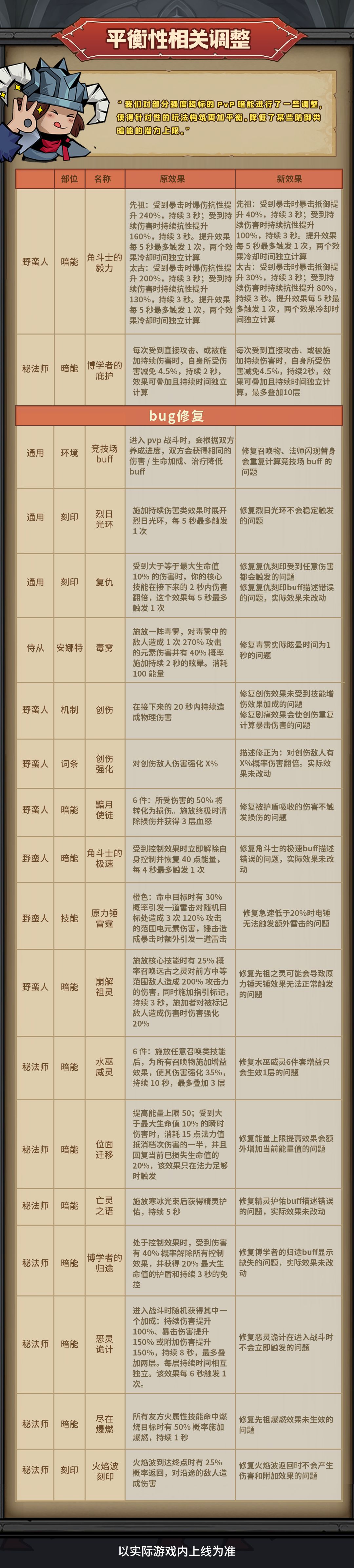 大家好!感谢你们一直以来对游戏的热爱与支持。我们始终相信,游戏的乐趣来源于公平与挑战并存的体验,而这离不开每一位玩家的反馈与建议。为了让大家在冒险旅途中能够感受到更平衡、更精彩的战斗体验,我们将在近期版本中,对以下内容进行平衡性调整。