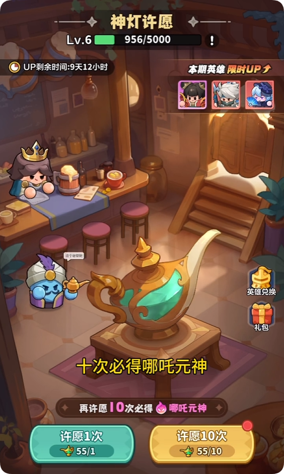 1.当哪吒英雄开放时,招募等级≥5级开启限时UP招募(神灯许愿)消耗许愿神灯可进行UP招募