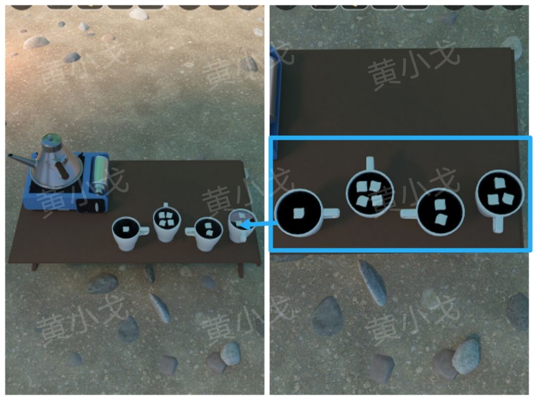 🔶[帐篷]场景杯子把手朝向和里面的糖块数量:右-1、上-4、左-2、下-3