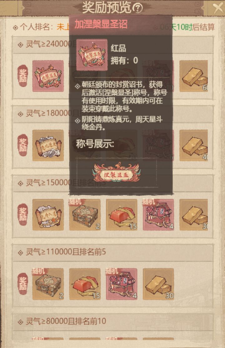 百朝历行任务奖励: 5 行 + 3 列的 4 级 / 5 级合成材料(炼器基础素材)。