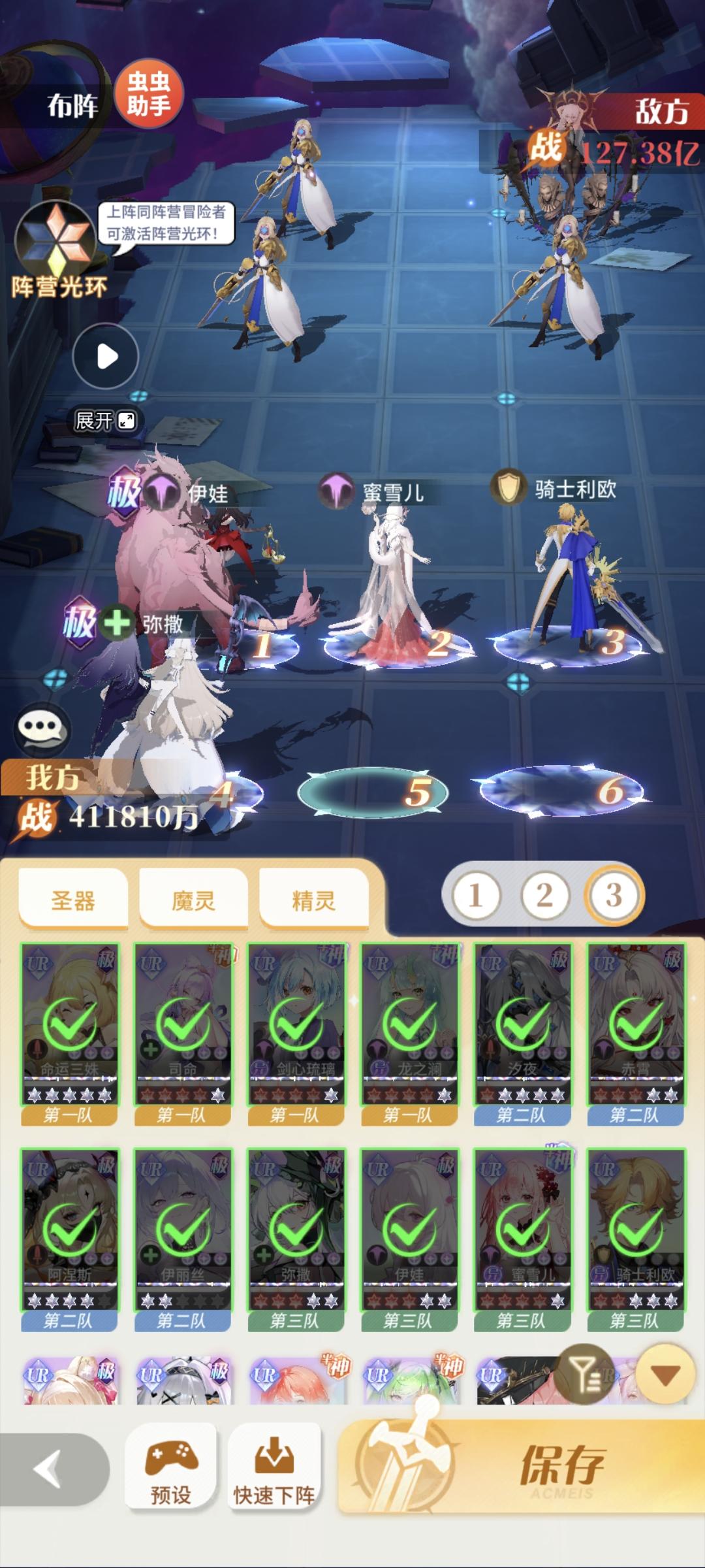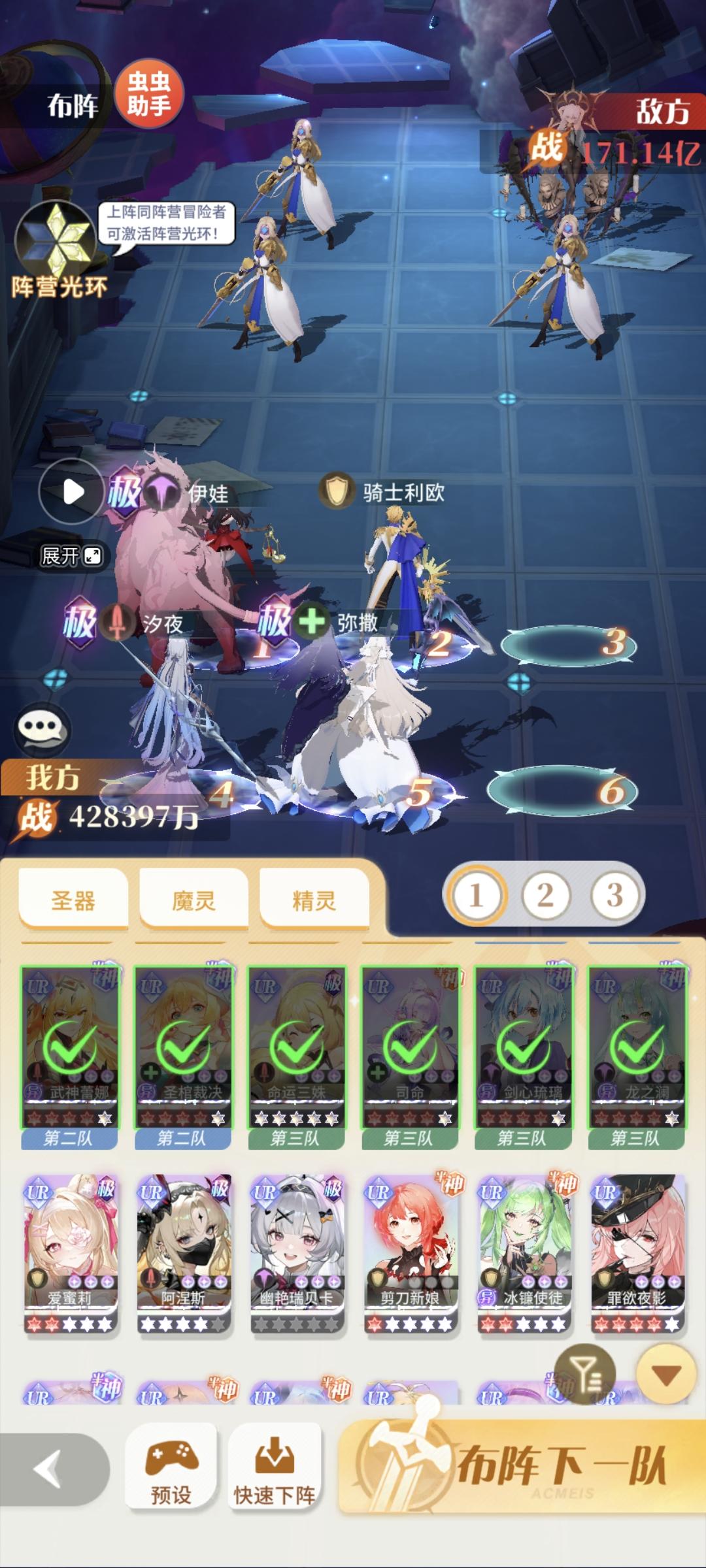 三队伊娃有复活一次也是逆风局2档神技,伊丽丝u1在同伴死后可以保一个也是2档神技,梦魅可惜我只有专1,有专2的话感觉也能算1档神技。顺带一提第一次回廊没有伊丽丝且弥撒没加强回血百分比30%到50%可以配,弥撒+观星者combo硬抗前2回合,现在已经没用了。