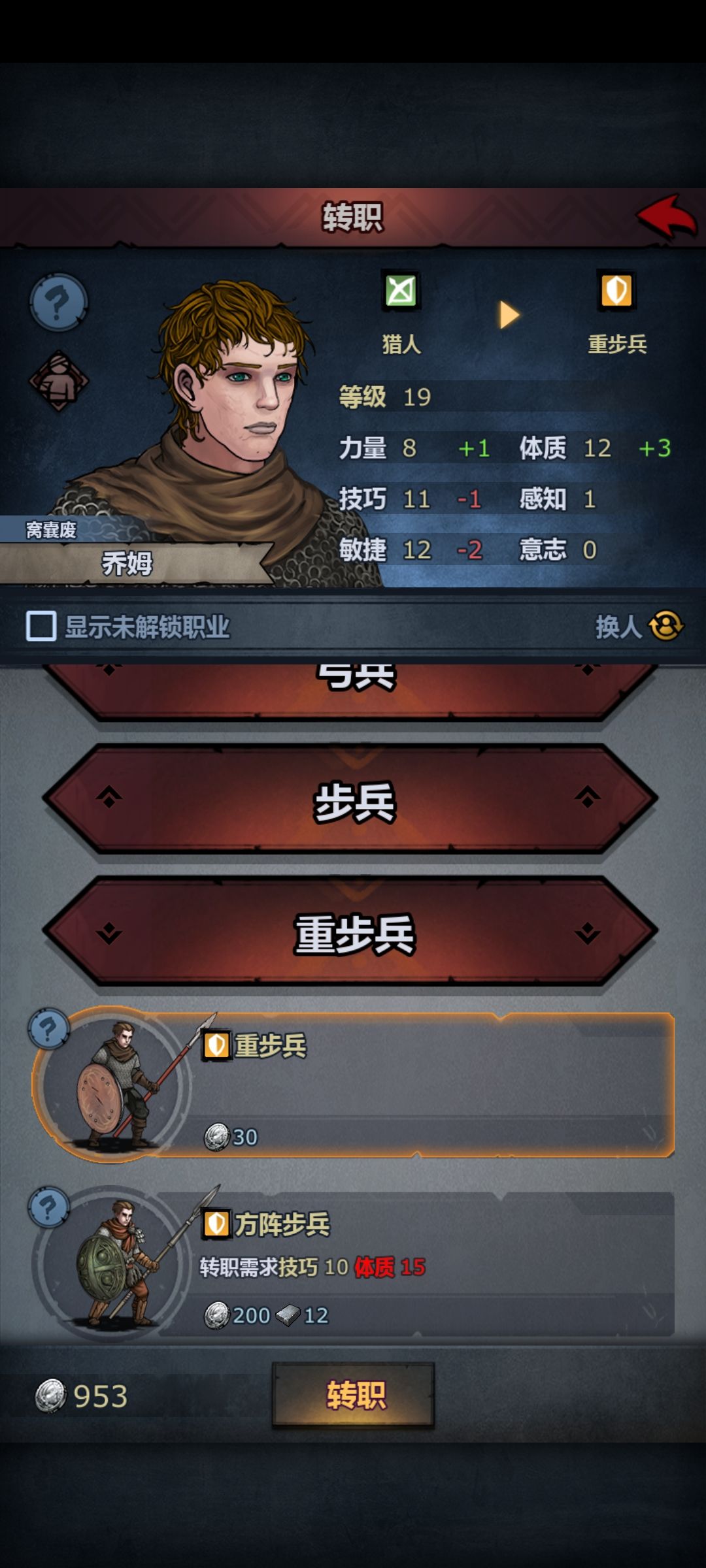 乔姆:猎人-19级重步-19级方阵-33级王禁。流血森之气息要用,练二十多级就差不多了。要练王禁的话森之气息过了后再练。