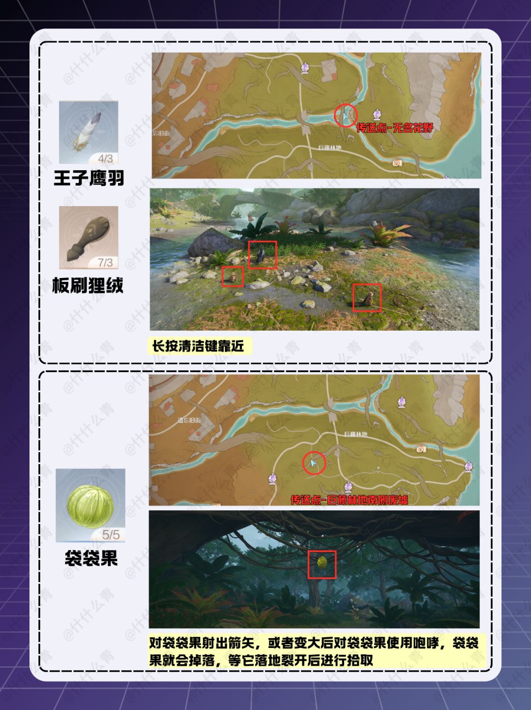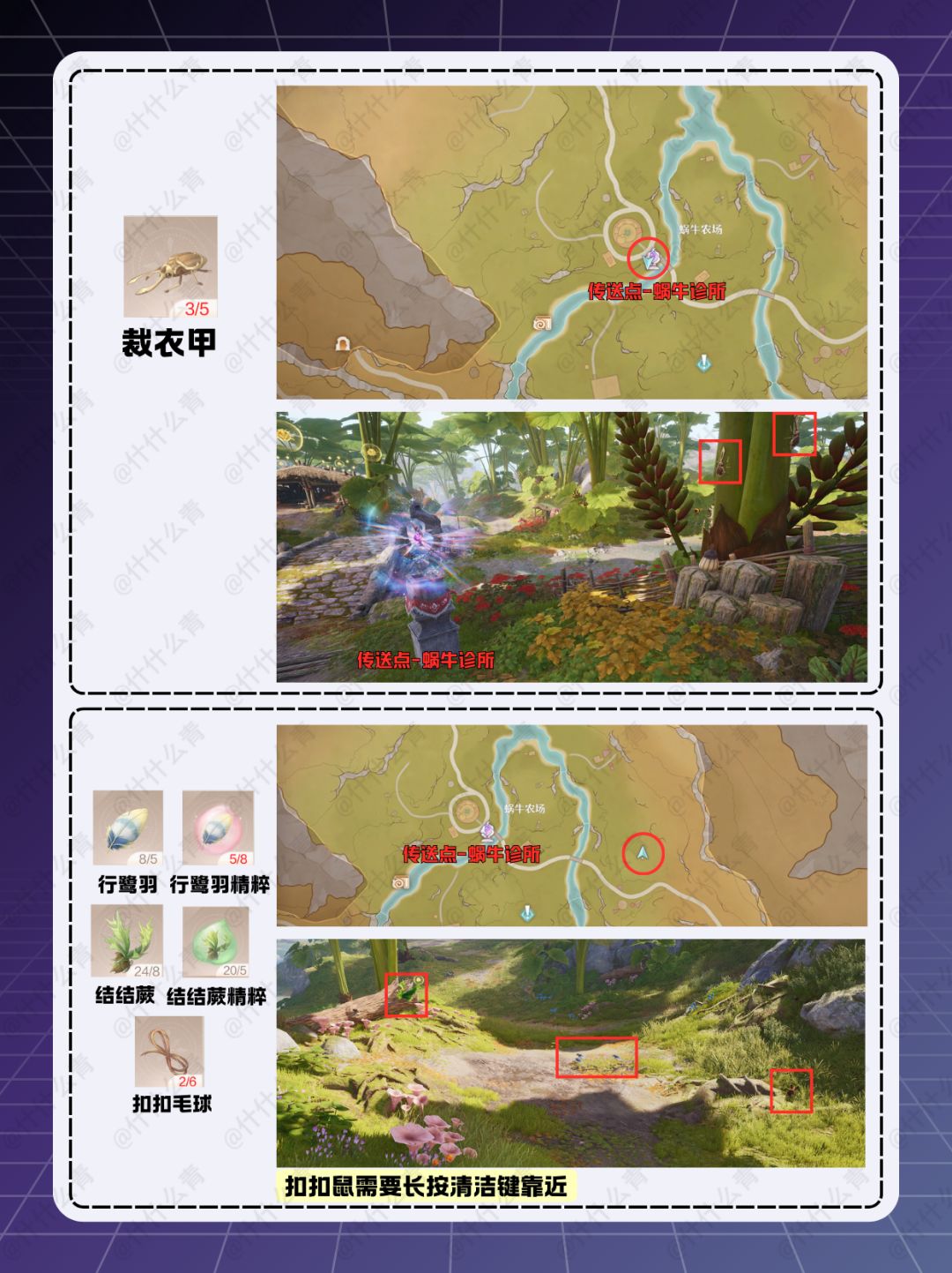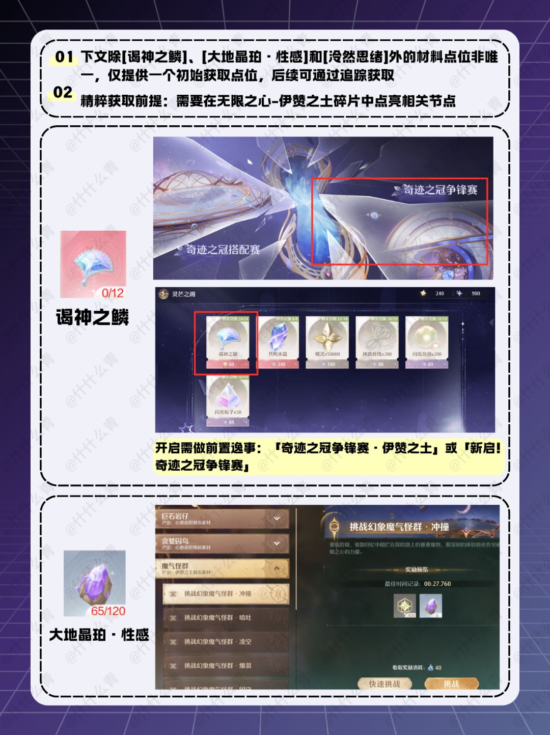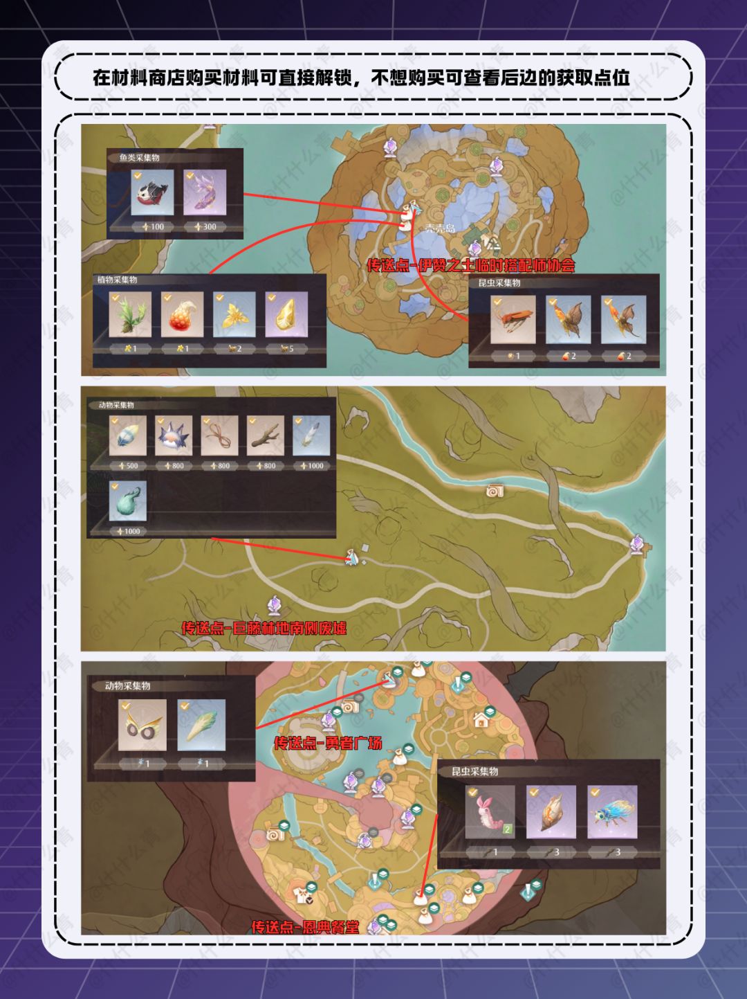 *图中除[谒神之鳞]、[大地晶珀·性感]和[泠然思绪]外的材料点位非唯一,仅提供一个初始获取点位,后续可通过追踪获取