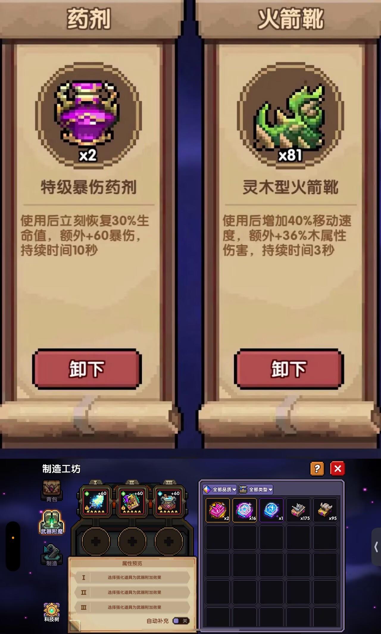 火箭靴选择木属性鞋,刀油或磨刀石选择3伤增。