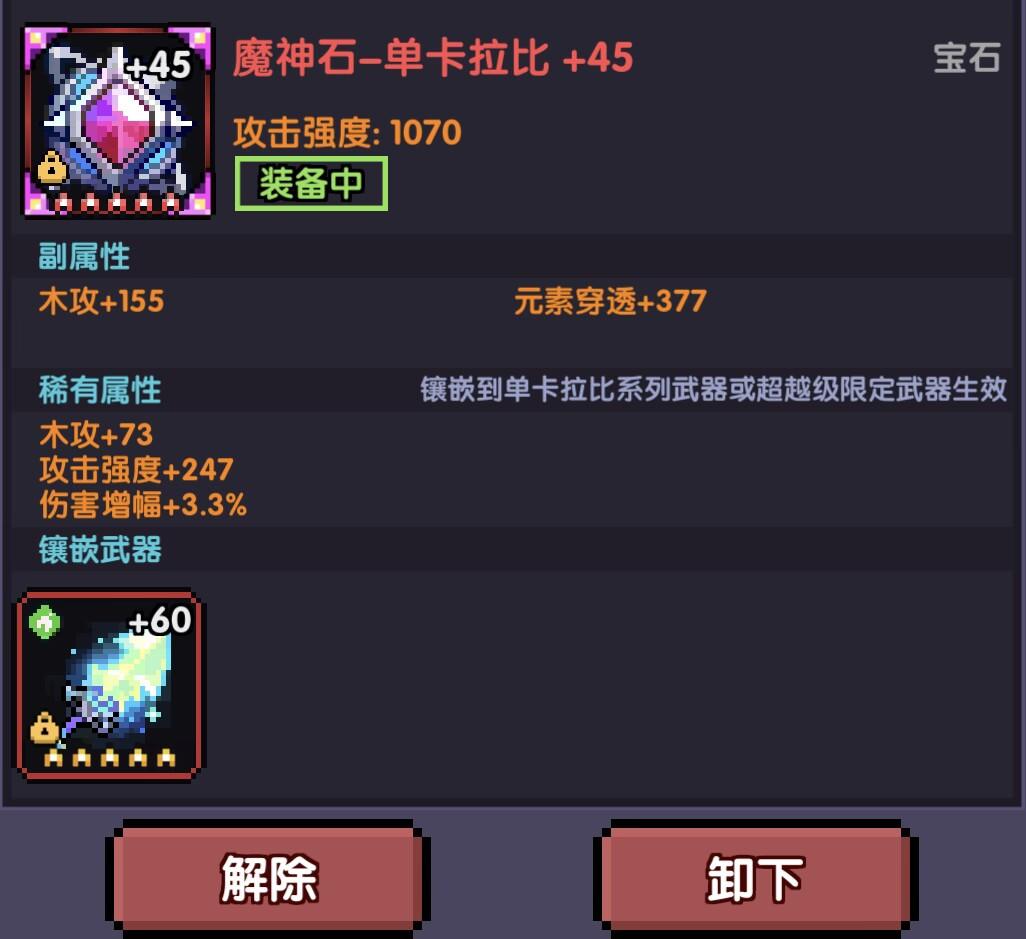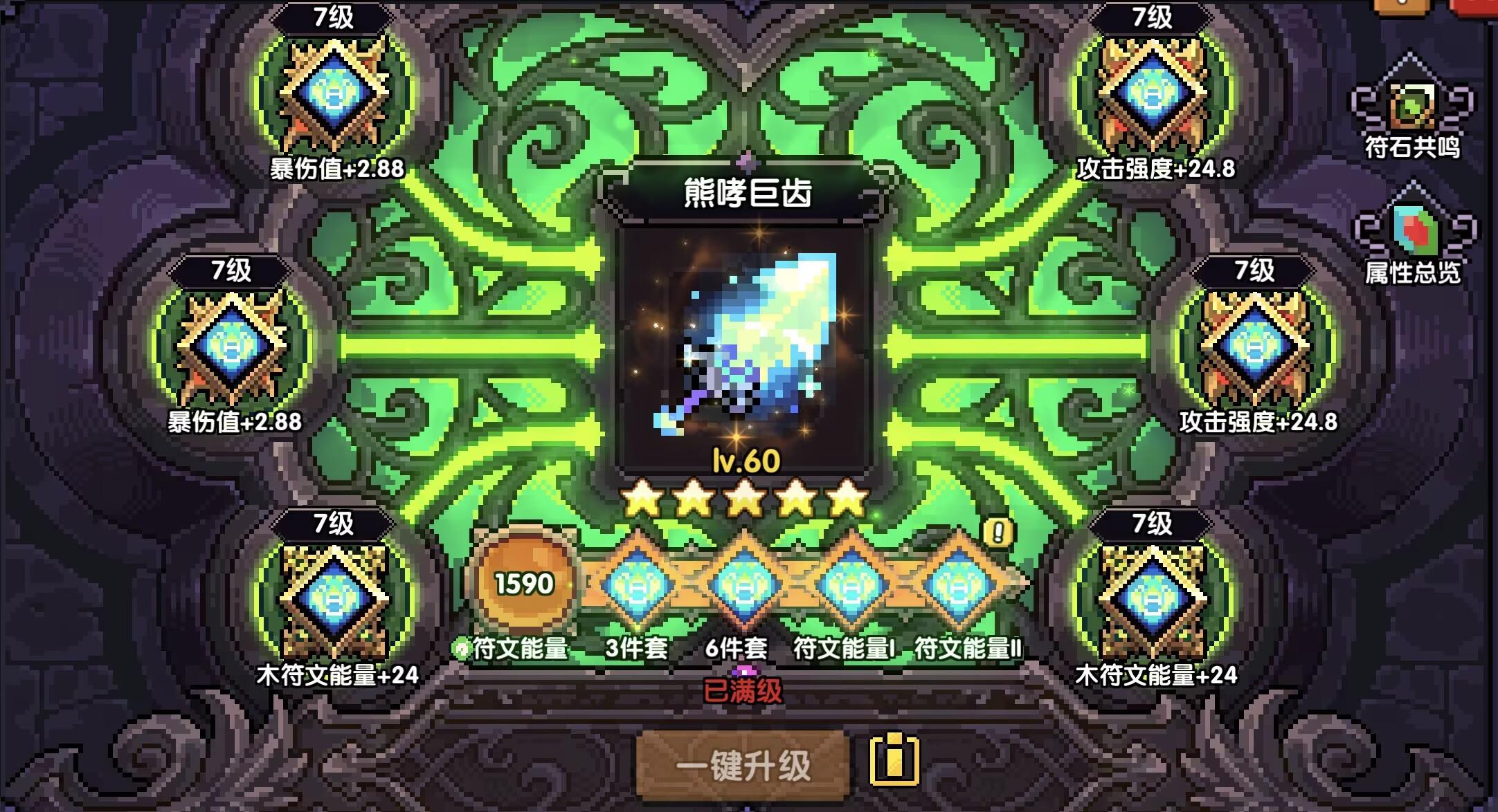 (竞技场通毕宝石不够的玩家优先保证稀有属性的伤害增幅和木攻,技能等级未满+18的优先考虑技能等级宝石)