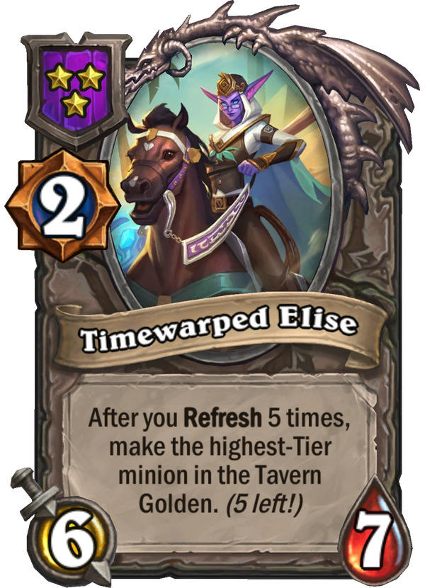 - [2费6/7] 在你刷新5次后,使酒馆中等级最高的随从变为金色。(还剩5次!)
