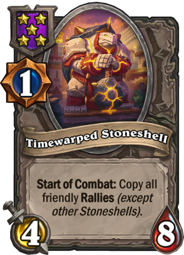 - [1费4/8] 战斗开始时:复制所有友方进击效果(其他石壳守卫的除外)。