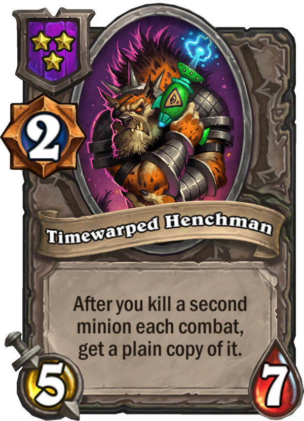 - [2费] 选择一个随从,获取相同类型的等级4,5,6的随机随从牌各一张。