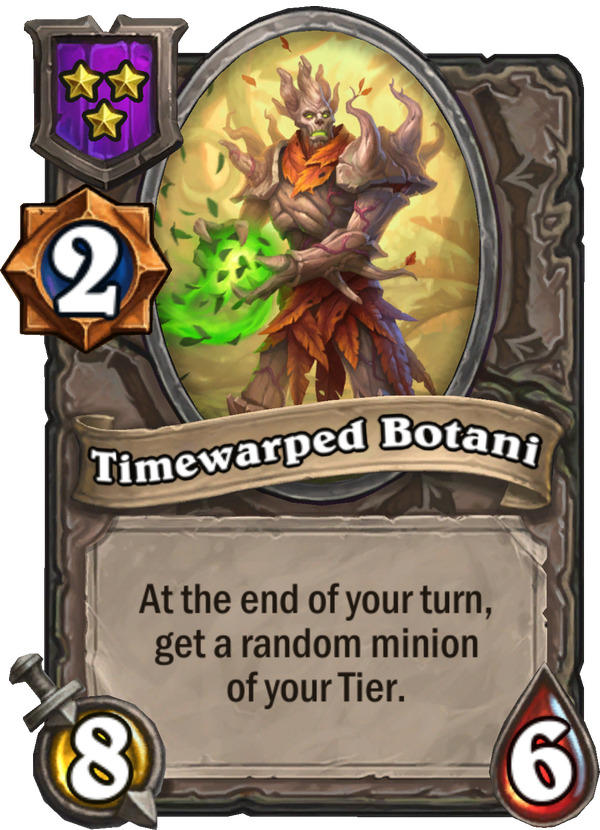 - [2费8/6] 在你的回合结束时,随机获取一张你当前等级的随从牌。