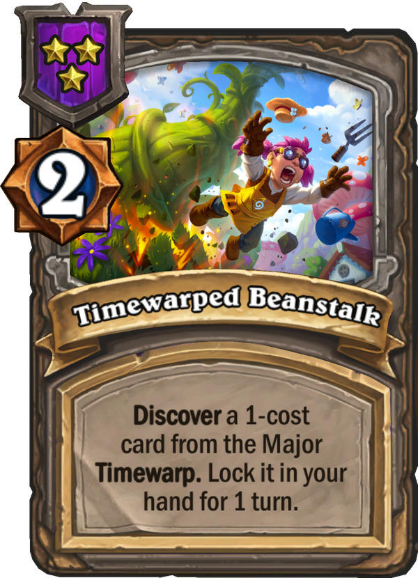 - [2费] 发现一张来自大型时空扭曲的消耗为(1)的卡牌,并将其锁入你的手牌1个回合。