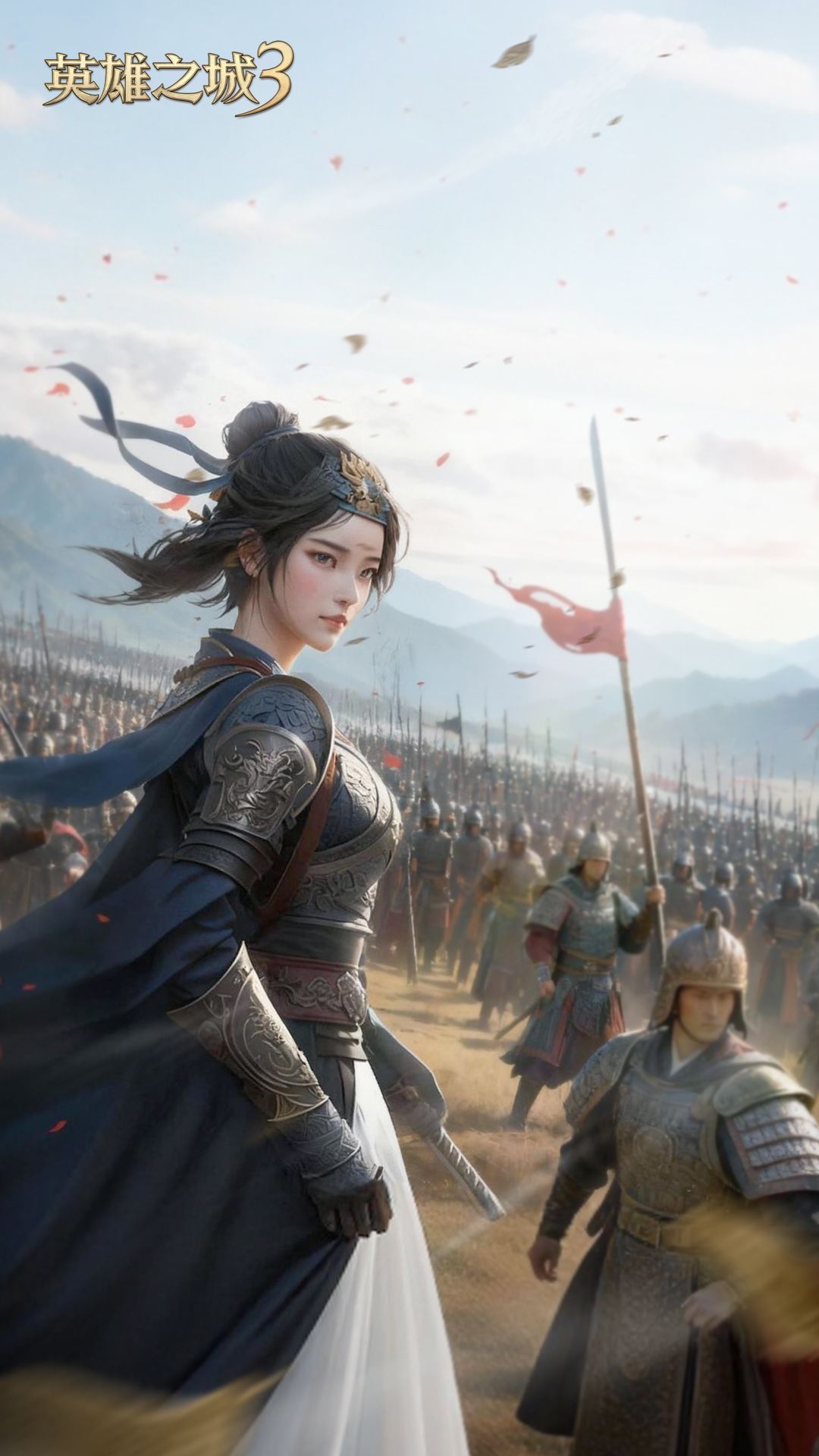 她披甲执戈,迎风而立,