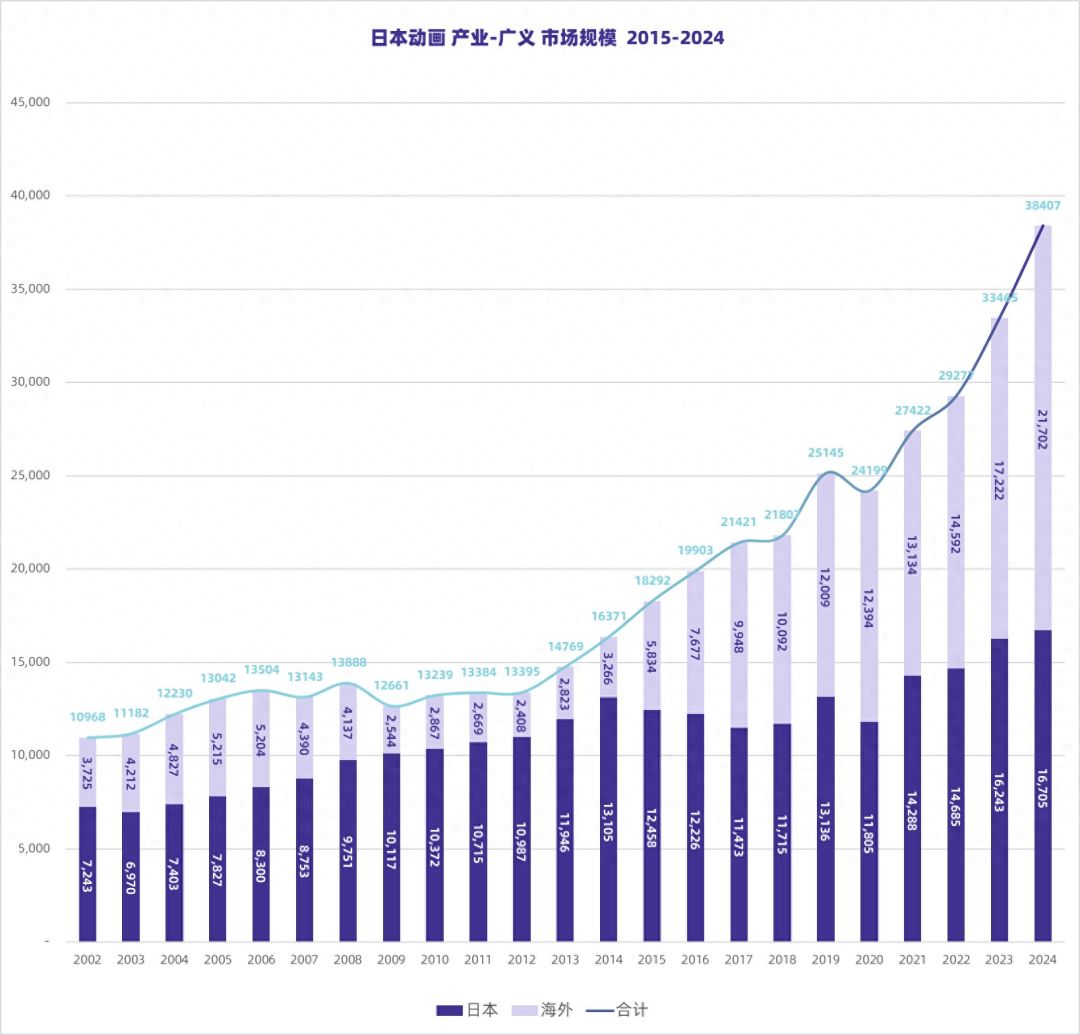 2024年日本动画产业市场规模高达3.84万亿日元。本文就简单说下中日两国动漫的商业化模式。一、制作委员会:分工明确的产业链日本动漫产业深谙“分散风险,共襄盛举”的运营模式。在《鬼灭之刃》的创作中,日本漫画家吾峠呼世晴和其所属的集英社提供着最原始的、充满生命力的漫画底稿。索尼音乐旗下的Aniplex以其在音乐与流行文化领域的敏锐,为作品确立商业赋能。但是提到UFOTABLE时我们不能不提到他们的制作工艺,。这个工作室简直就是一个贴画界的大师级人物,在对创造及各种资源的运用上,用“特效摄影”和“数字作画”这样的绘画手法在电影的银幕上一遍遍的压印着形形色色的画面,从而诞生了令人眼花缭乱的画面效果以及引人瞩目的动效。