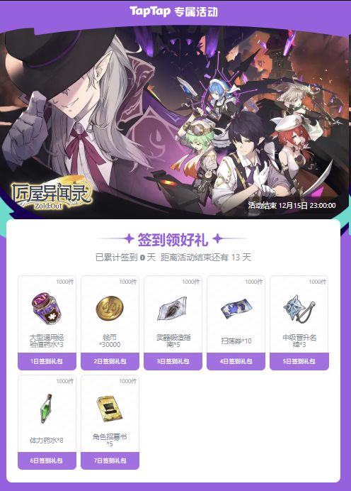 匠屋异闻录-匠屋异闻录×TapTap十二月上签到礼包
