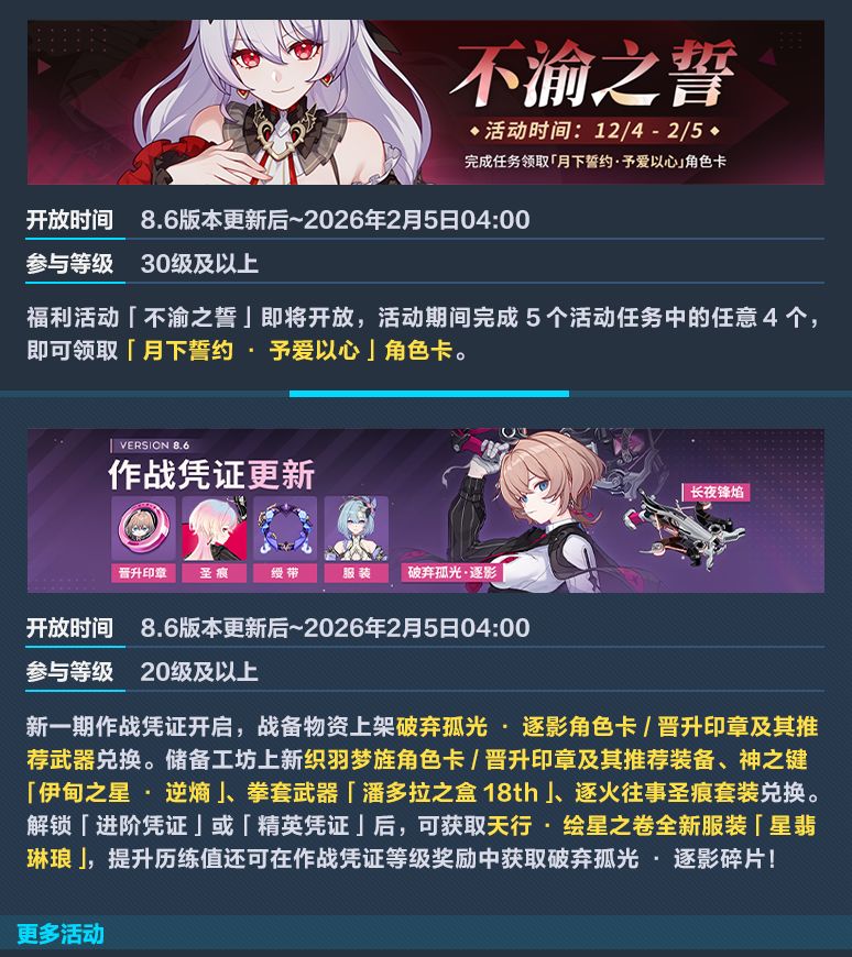 【公告】《崩坏3》8.6版本维护通知、新活动预告