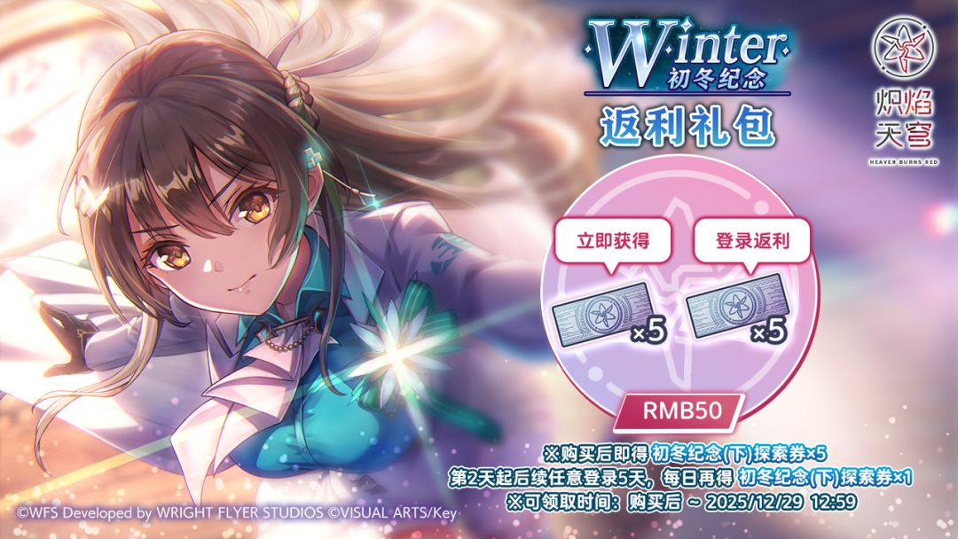 ●购买后可立即获得「初冬纪念(下)探索券×5」,第2天起后续任意登录5天,每日可获得「初冬纪念(下)探索券×1」。