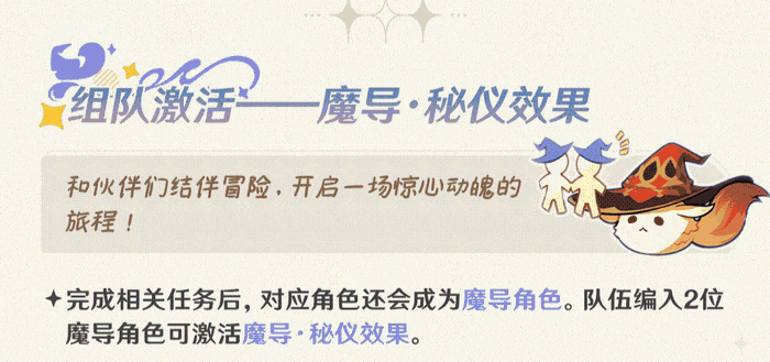 不过要注意的是新增的魔导天赋需要队伍中有两位魔导角色才能触发,类似月兆·满辉天赋。也就是说目前只能是这八位角色中的两位在队伍中才会有加强后的效果,如果只有一位魔导角色的话是没有加强天赋的