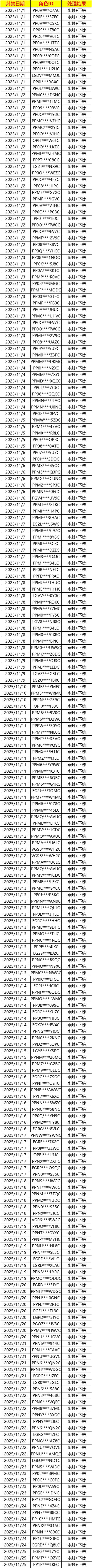 以下为11月1日至11月25日期间,运营团队处理的违规操作&外挂封禁名单公示,敬请各位勇者以此为戒。