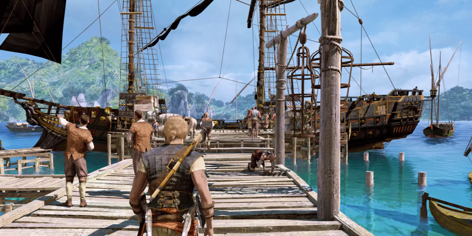 天气系统可能参考新作《刺客信条:影》的表现,海浪、风暴、光照等动态更真实,环境互动也更丰富,进一步强化《黑旗》最具记忆点的“海上气氛感”。