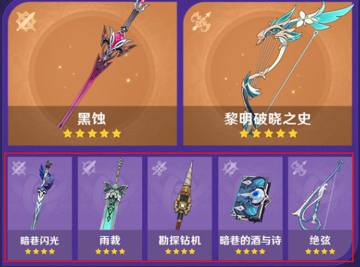 限定5星武器:单手剑·黑蚀、弓·黎明破晓之史;