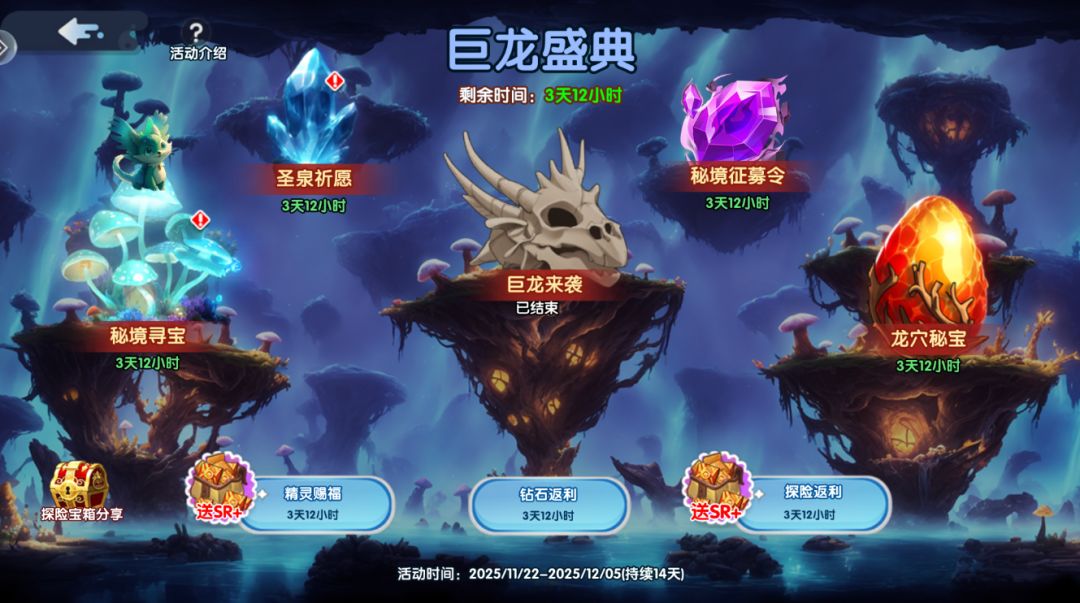 巨龙来临时建议大家多屯钻石以及招募令;因为在巨龙活动期间消耗这两个道具会有累计奖励(例如上图中的钻石返利、秘境征募令)