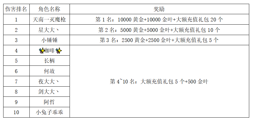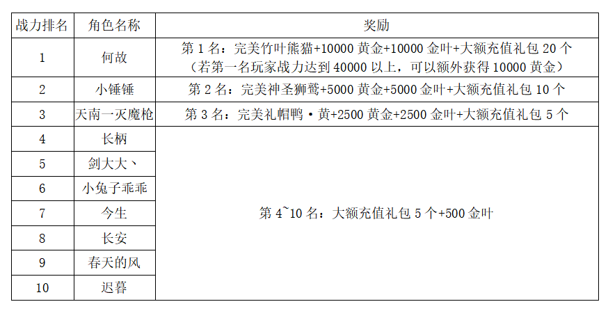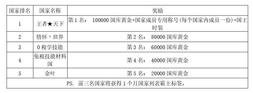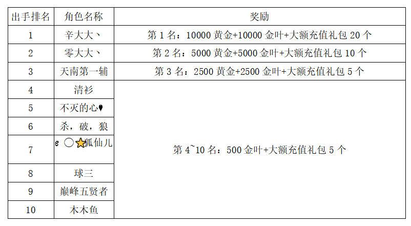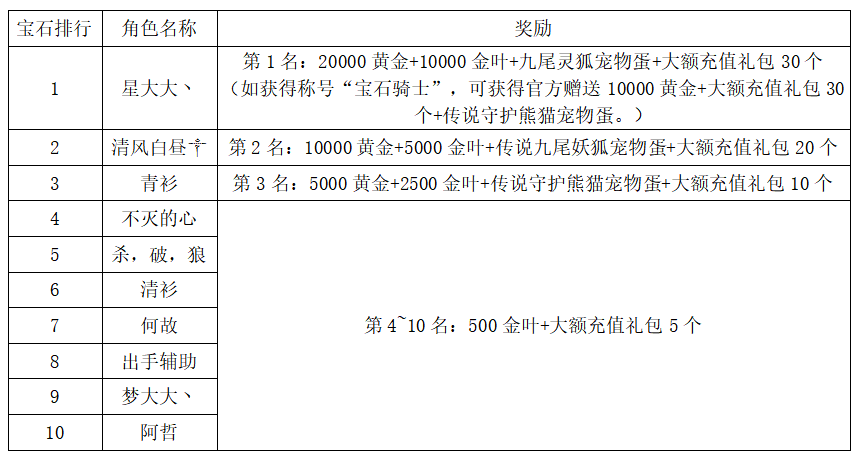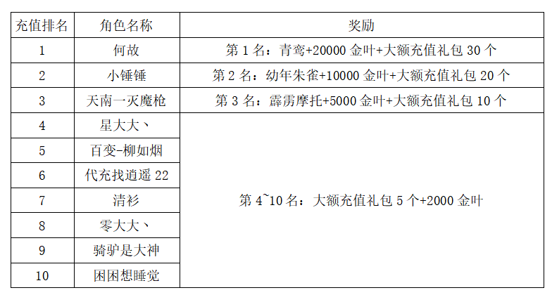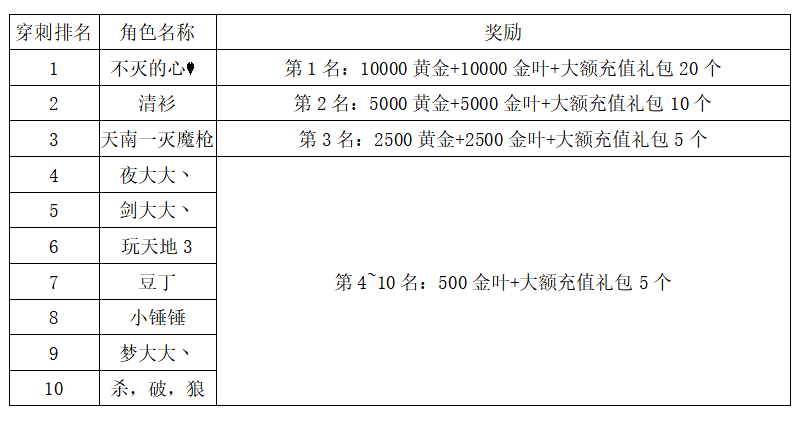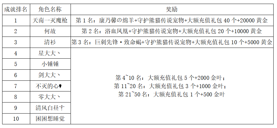 注:以上活动排名均以服务器时间为准。新区排行榜活动如发现存在违反游戏相关规定使用游戏外的辅助工具进行作弊将取消获奖资格。