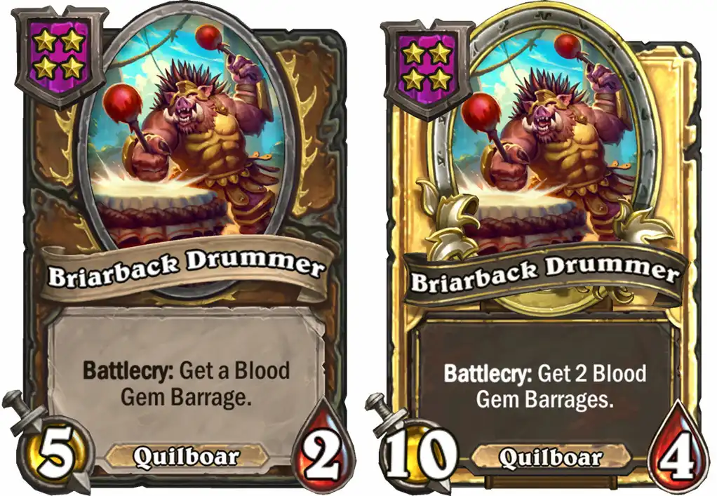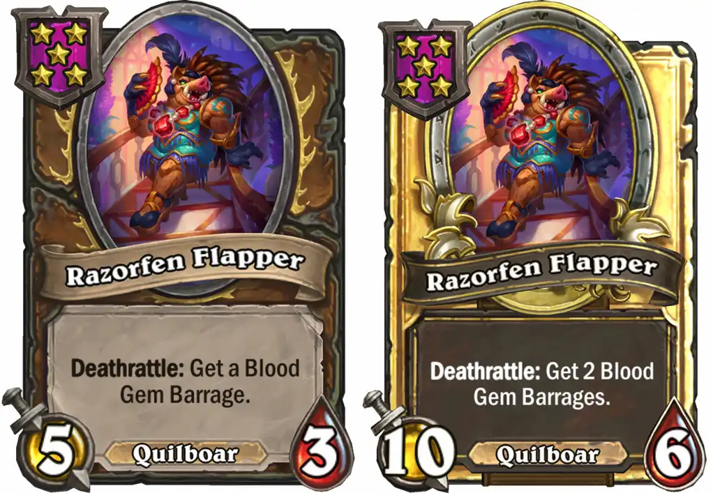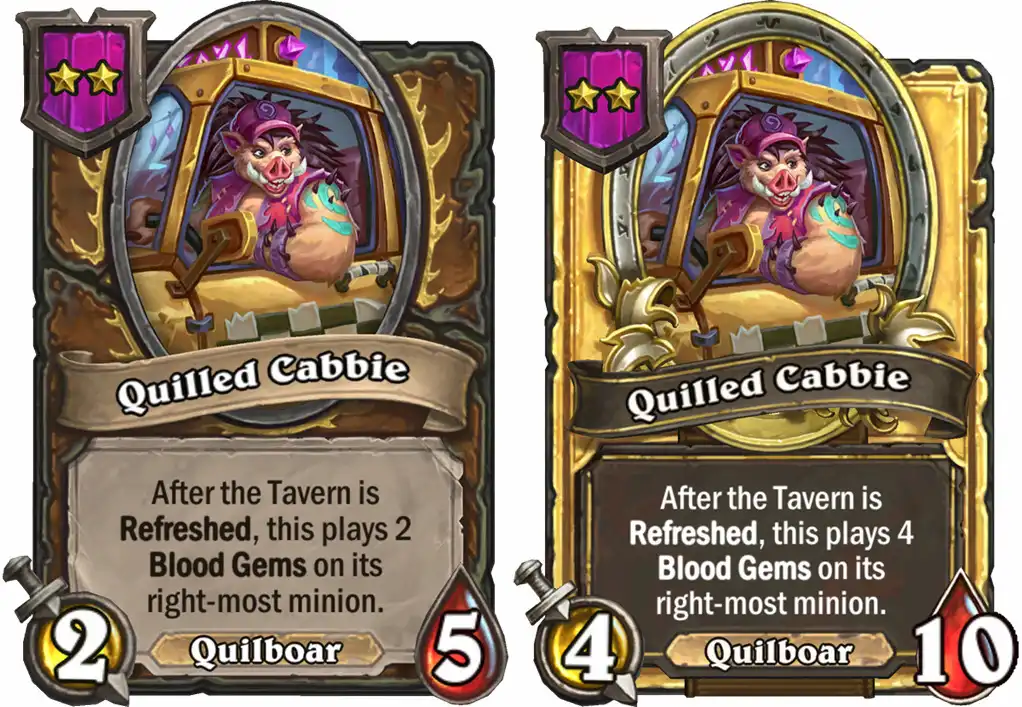 [2星2/5野猪人]在酒馆刷新后,本随从对酒馆中最右边的随从使用2张鲜血宝石。