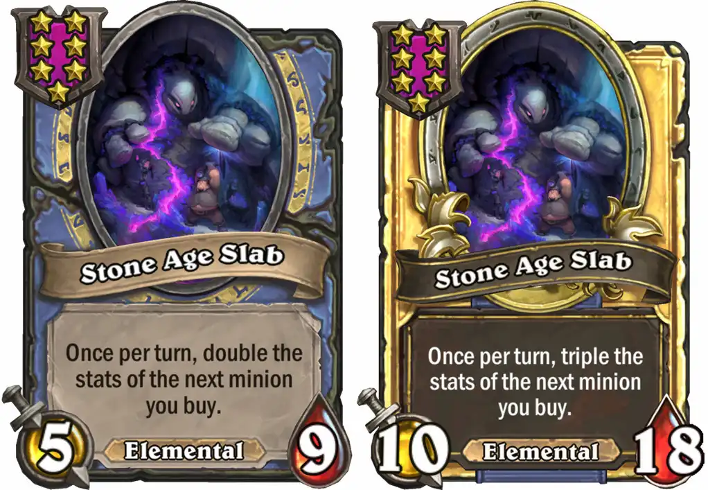 石器时代顽石[7星5/9元素]每回合一次,使你购买的下一个随从属性值翻倍。