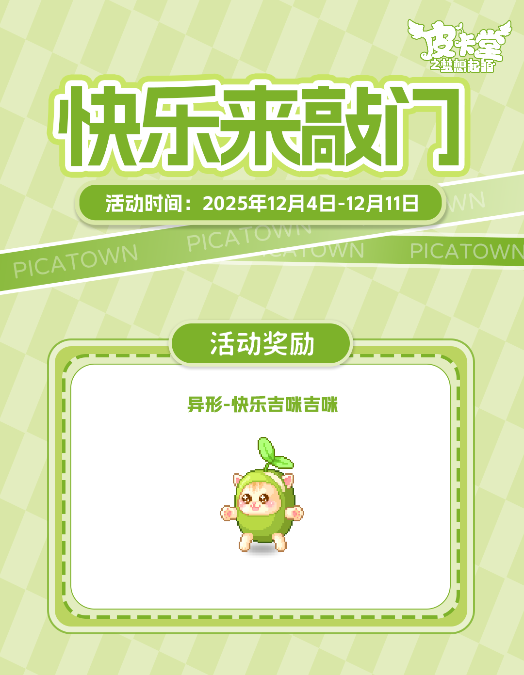 -【快乐来敲门】最幸福最快乐的小居民是谁啊?当然是皮卡亲啦~参与附身玩法可获得异形装扮「快乐吉咪吉咪」。