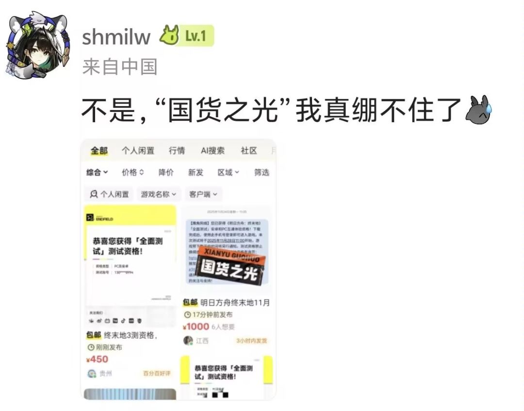 不过开测同时,在海鲜市场“终末地测试资格”被炒至800元高价的同时——