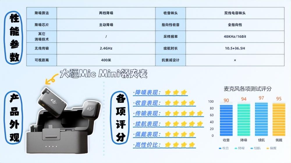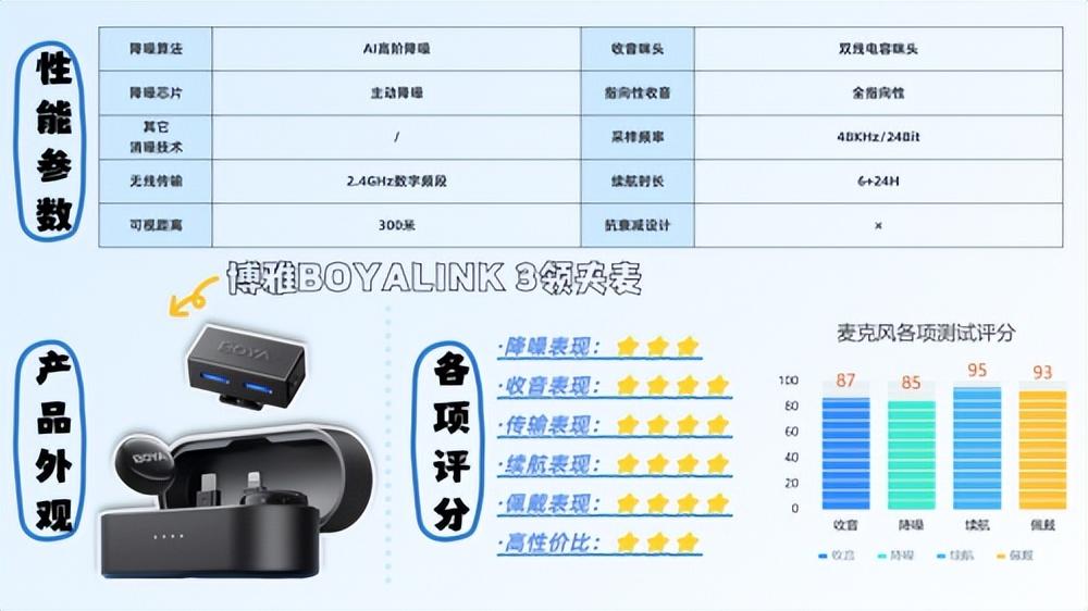 此外,它还支持双人同时对话,提供-20dB的安全音轨,实时监听耳返功能等,内置DPS主动降噪技术,信噪比高达105dB,采用加强版全指向AI感知麦克风,采样率为48kHz/24bit。即便在距离达200米处,也能轻松应对远距离收音,总续航时间长达30小时。并兼容相机、移动设备、平板电脑以及各类电脑等多种设备。在各方面的表现上,它远超同价位的其他产品,在麦克风领域处于顶尖地位,性价比完爆,堪称千元以下最好一款。