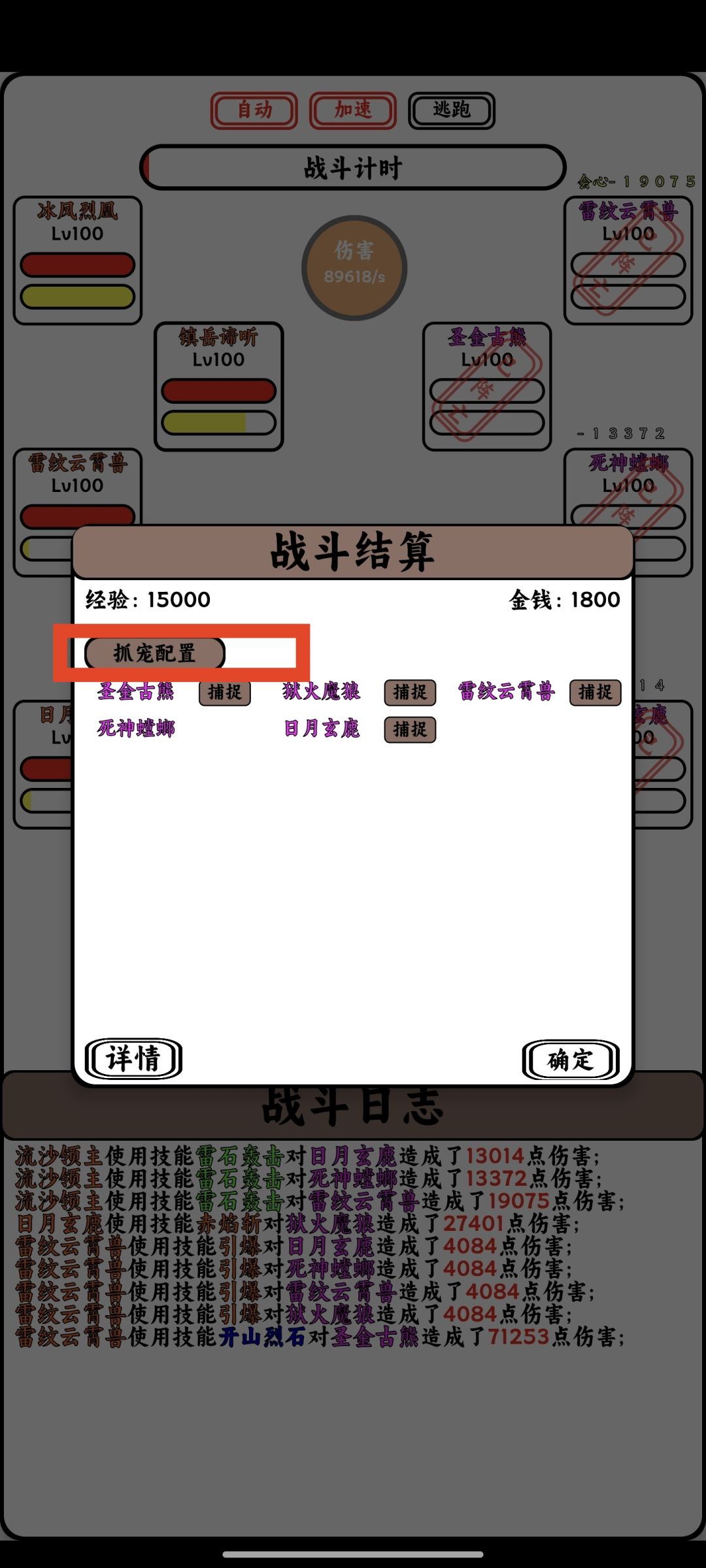 1.打开100级图并获胜进入到结算界面,点击左上角抓宠配置