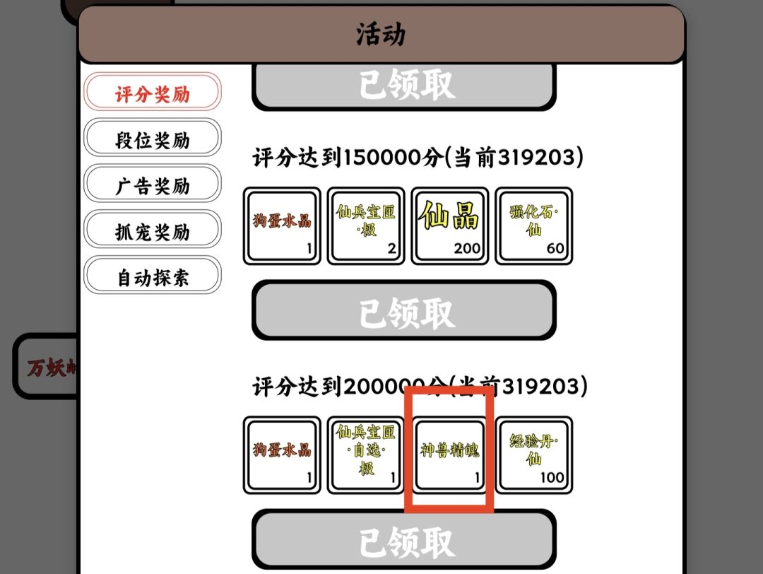 抓到雷兽(雷纹云霄兽)后,就开始第二步凑20万战力,去领取活动里的20万战力礼包。获取礼包内的神兽精魄