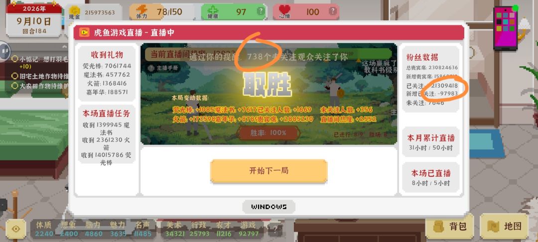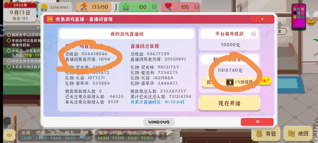 OK鸭兄弟们,咱也是被[限流]了,直播单次收益2个小目标以上[被直播间砍到2000w],介于直播间热度和贵宾、粉丝的离谱数值终于还是把后台搞崩溃了