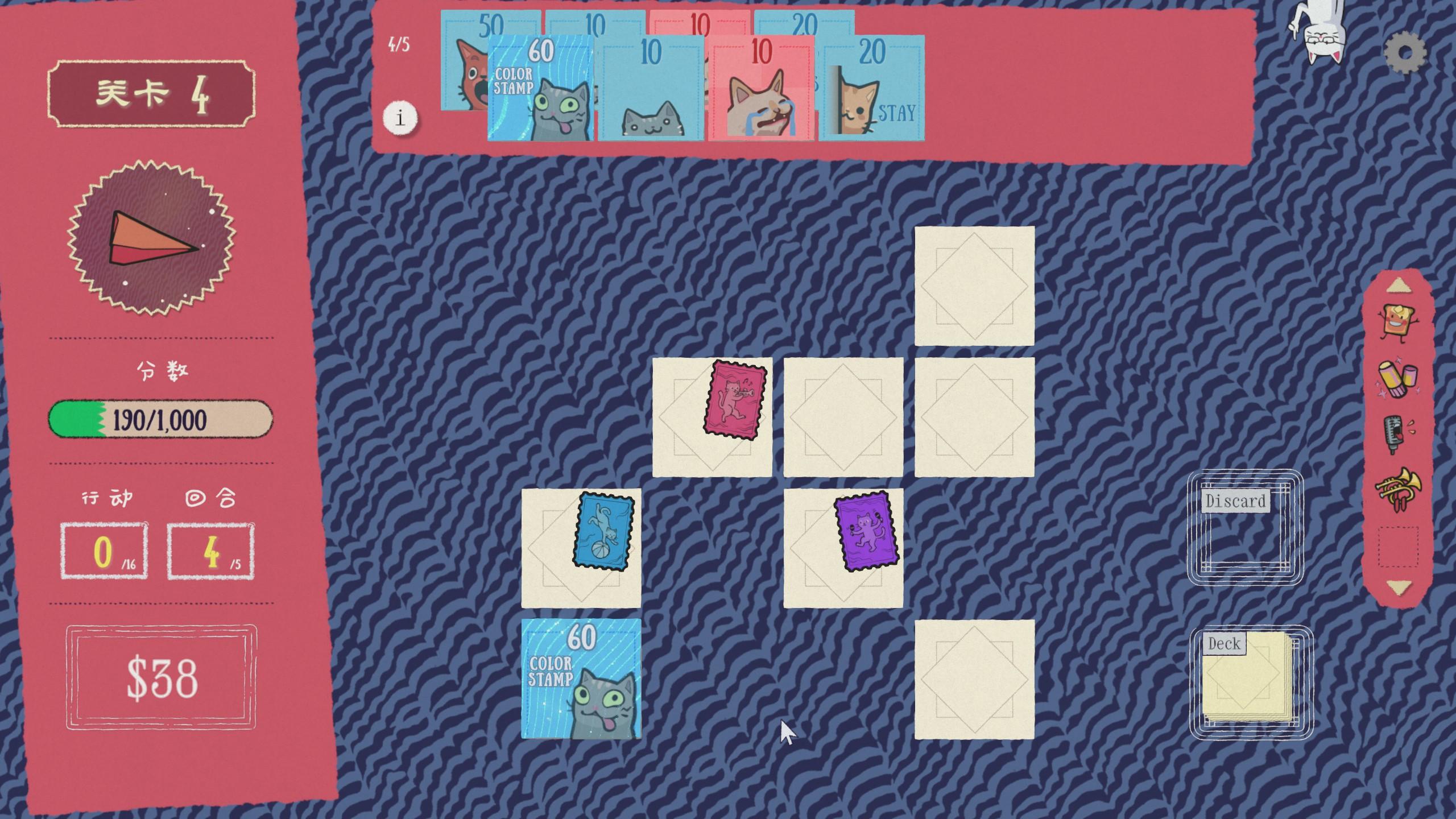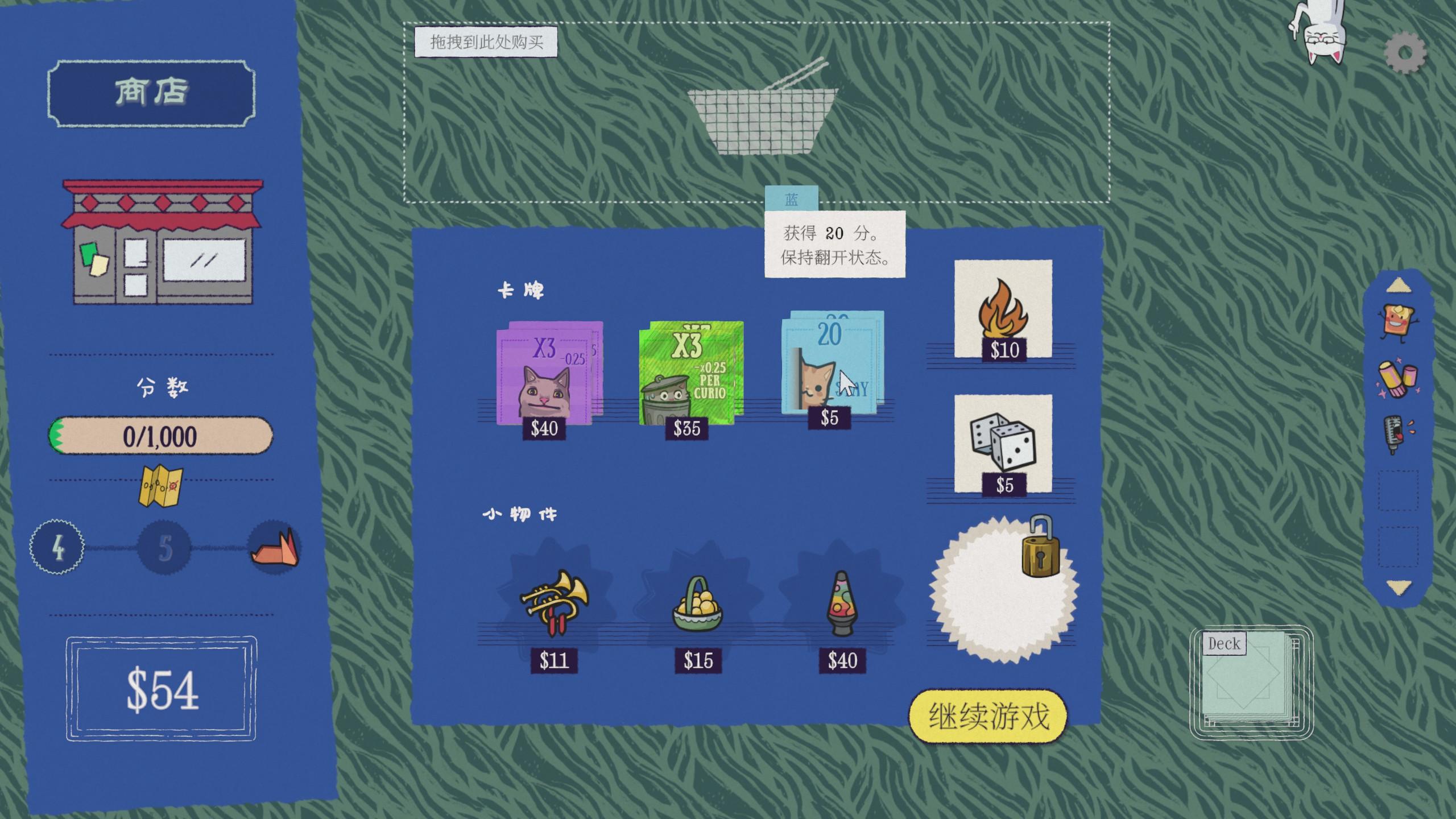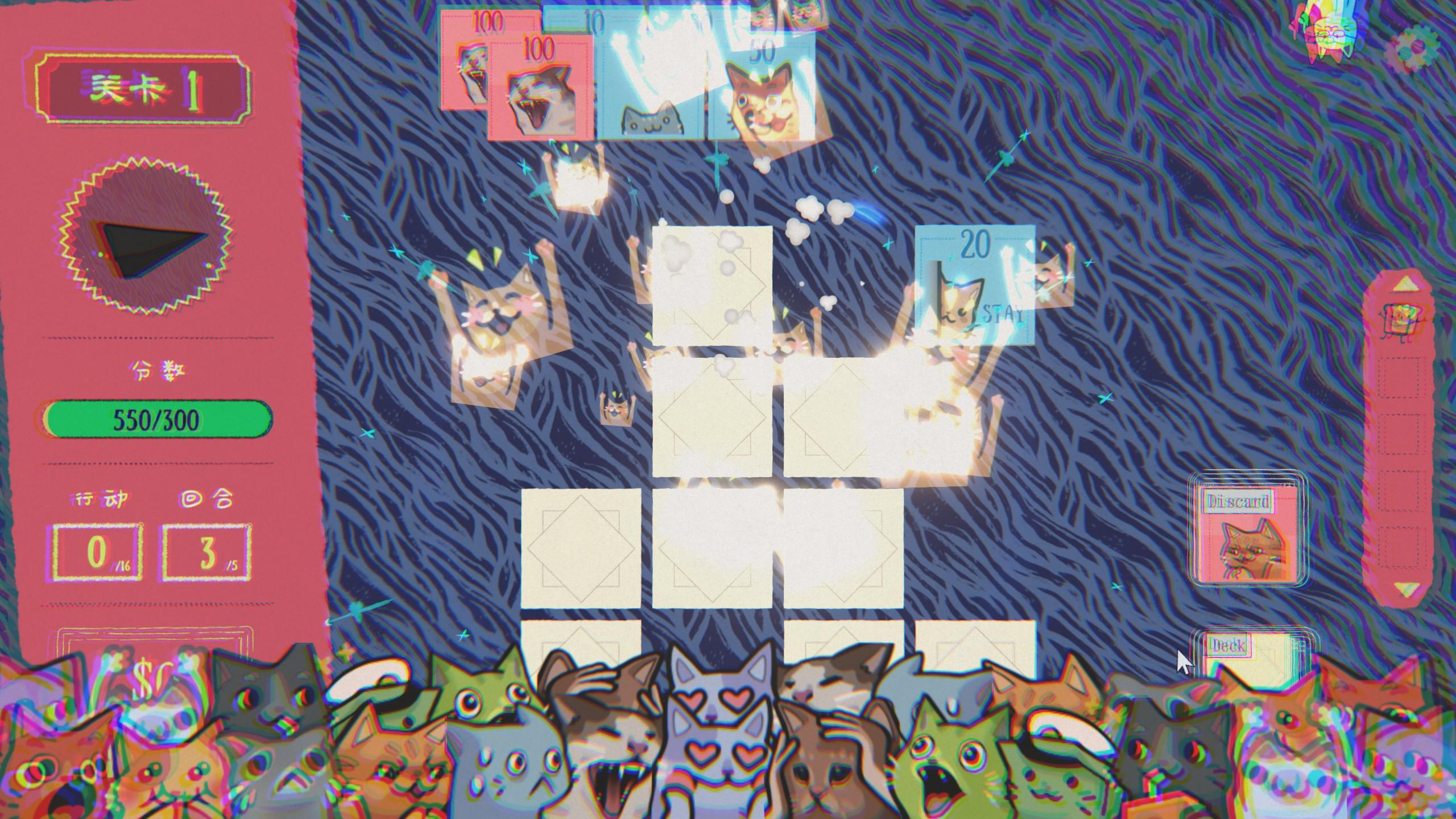 猫猫卡牌极具趣味性,让人忍俊不禁,光是看着卡牌对碰就让人上头,在游玩中还考验玩家的记忆力和简单的计算能力,金鱼记忆是根本玩不了一点的,策略性也不弱。游戏中最让人难崩的是你退出游戏的时候不是马上就退出了,还得看看制作人的哈吉米大头照才会自动退出,看得出制作人非常喜欢猫咪了。推荐喜欢小丑牌等卡牌肉鸽的玩家游玩,快来一起翻开猫猫卡牌吧!