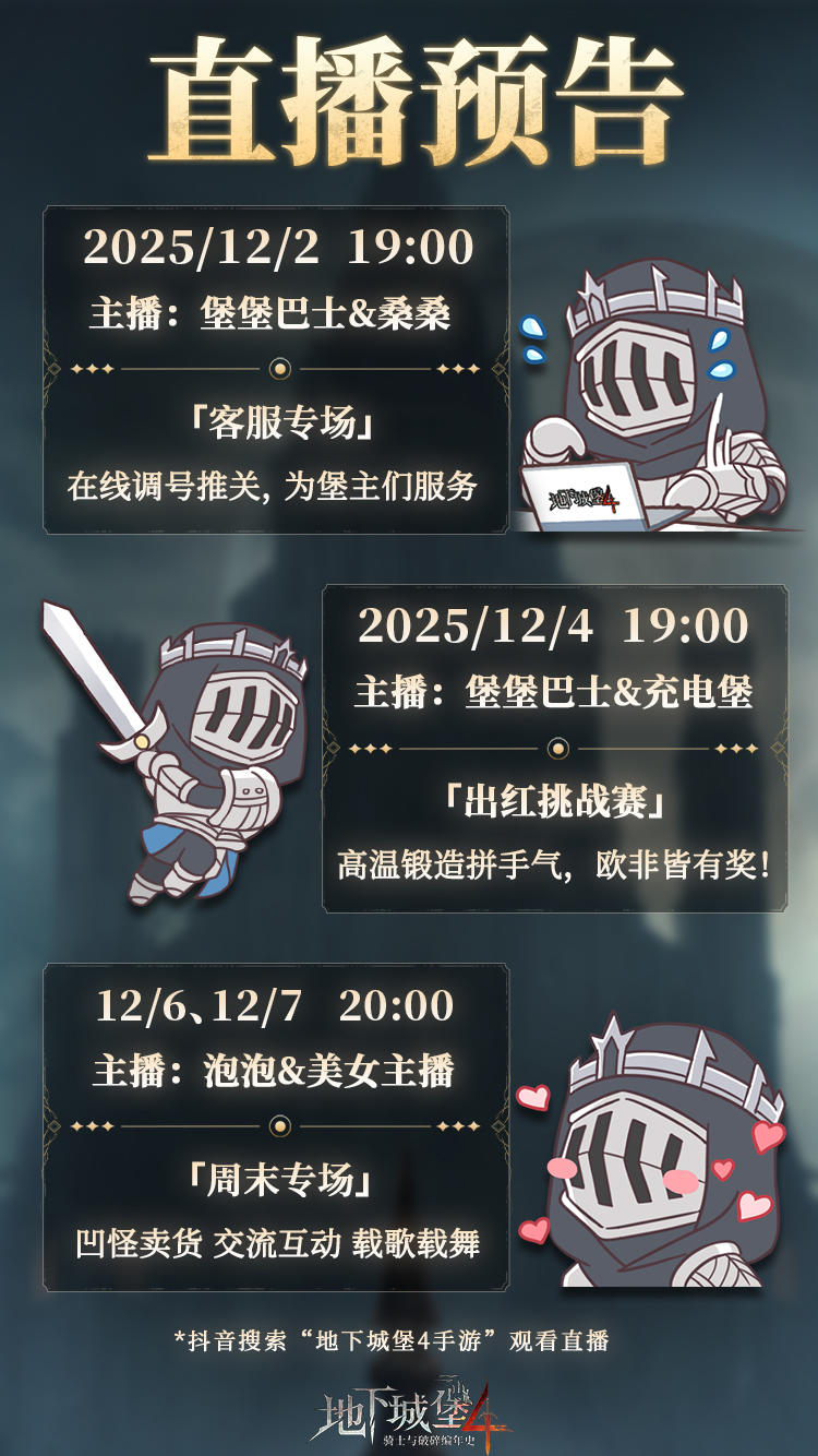 堡主们好,本周的直播预告新鲜出炉——