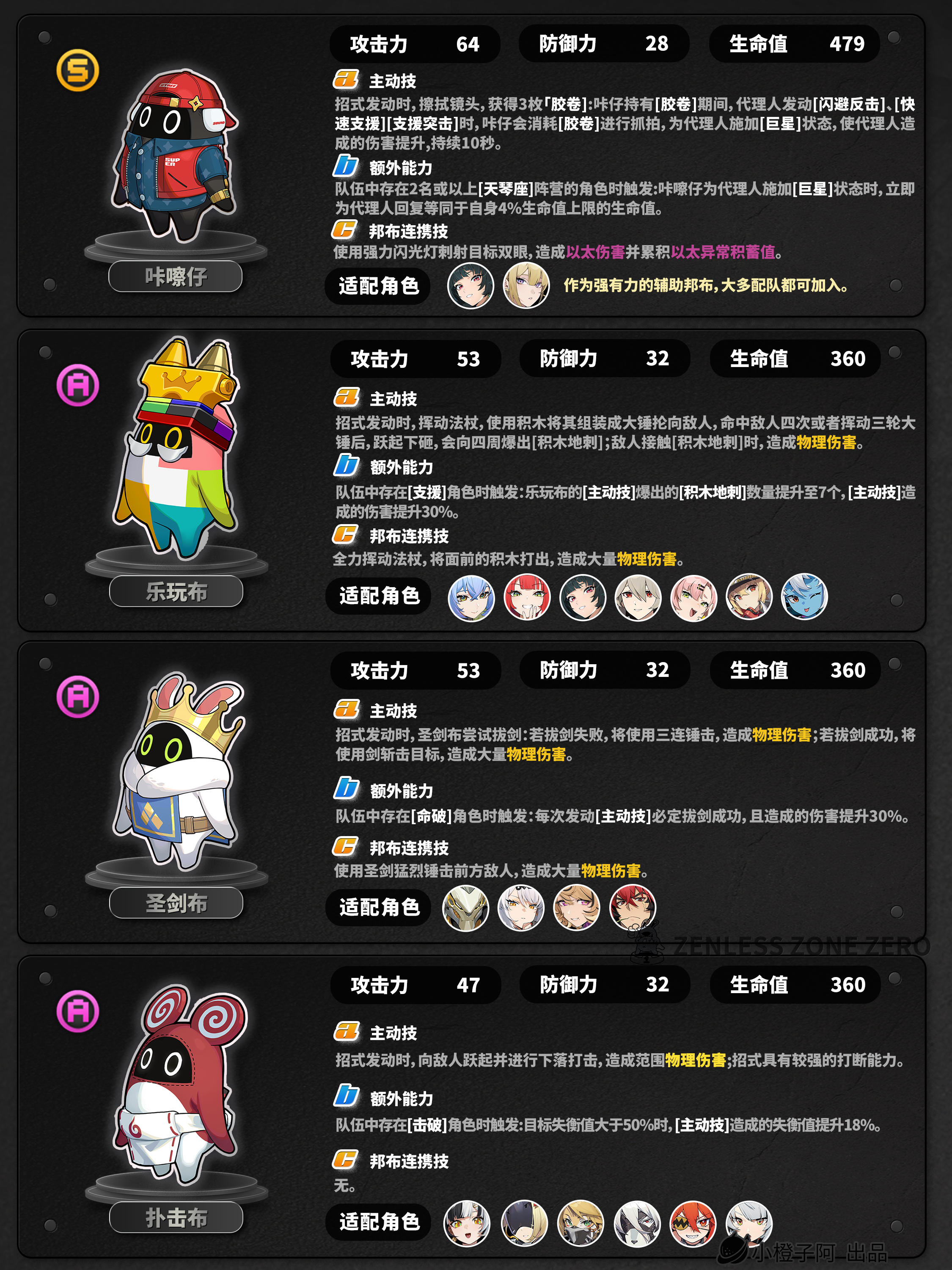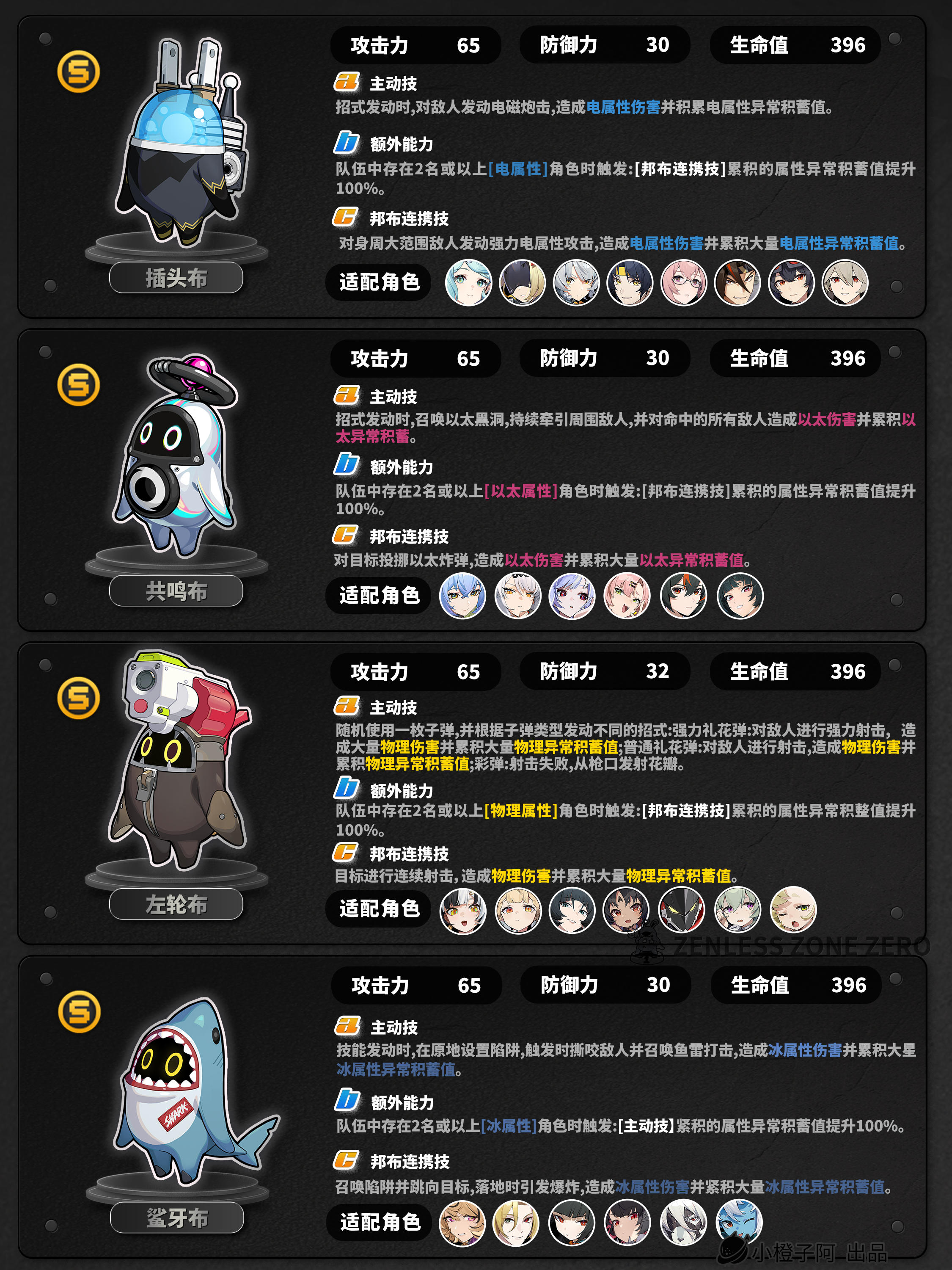这一期是v2.4.0(加入S级比克布利克、A级乐玩布)邦布介绍与角色推荐。
