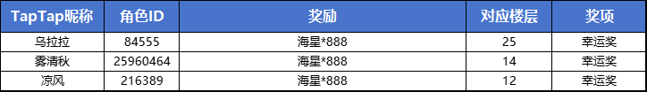 ①获奖名单将在活动时间结束后5工作日内在本帖内公示,冒险者记得查看并按提示登记获奖信息哦;