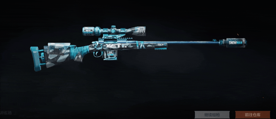 以深邃的墨蓝色与纯黑色为主色调,如同深夜冰河的底色,沉稳中透出凛冽气息。枪身上,树脂材质模拟的冰封效果被刻画得淋漓尽致。
