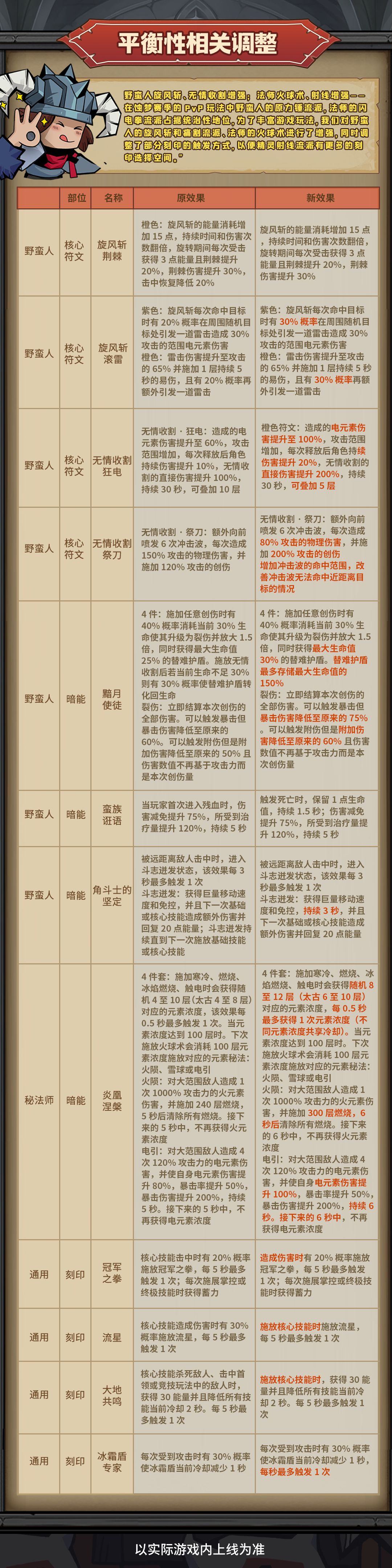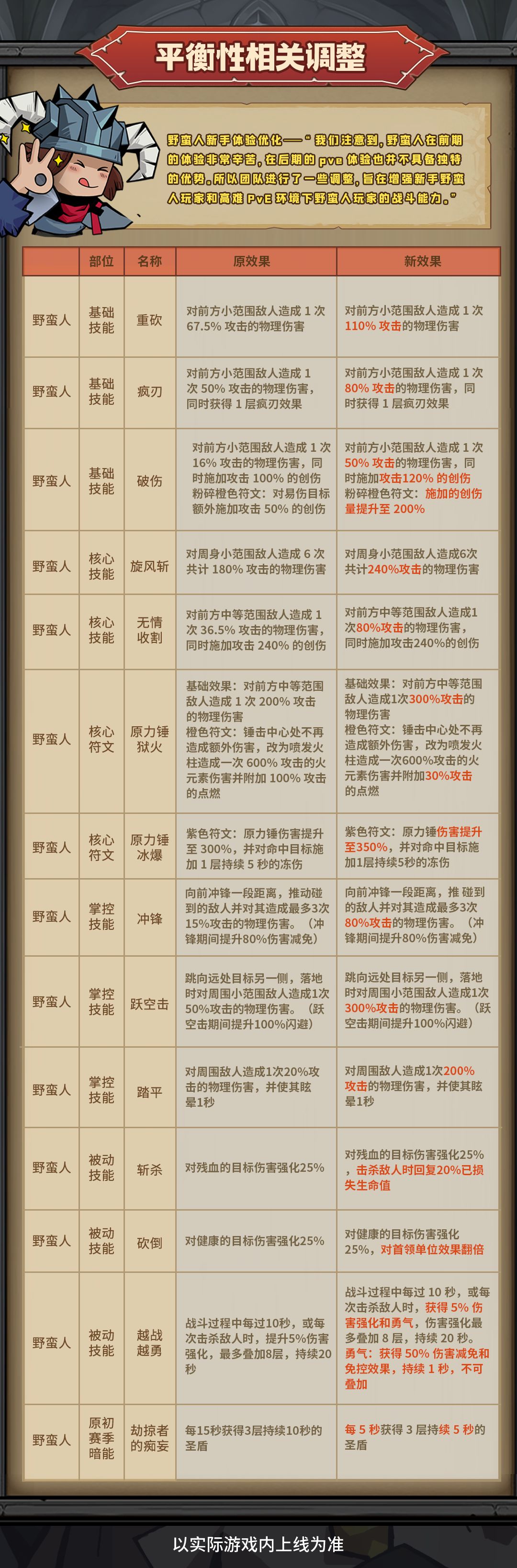 【平衡性调整】