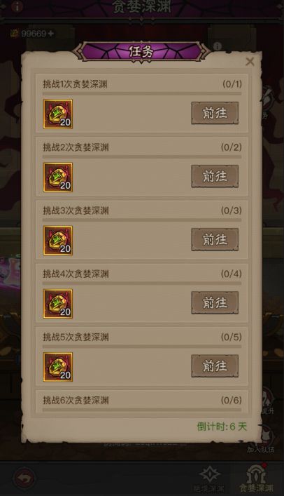 2.贪婪深渊拥有每日挑战上限,每天最多挑战5次