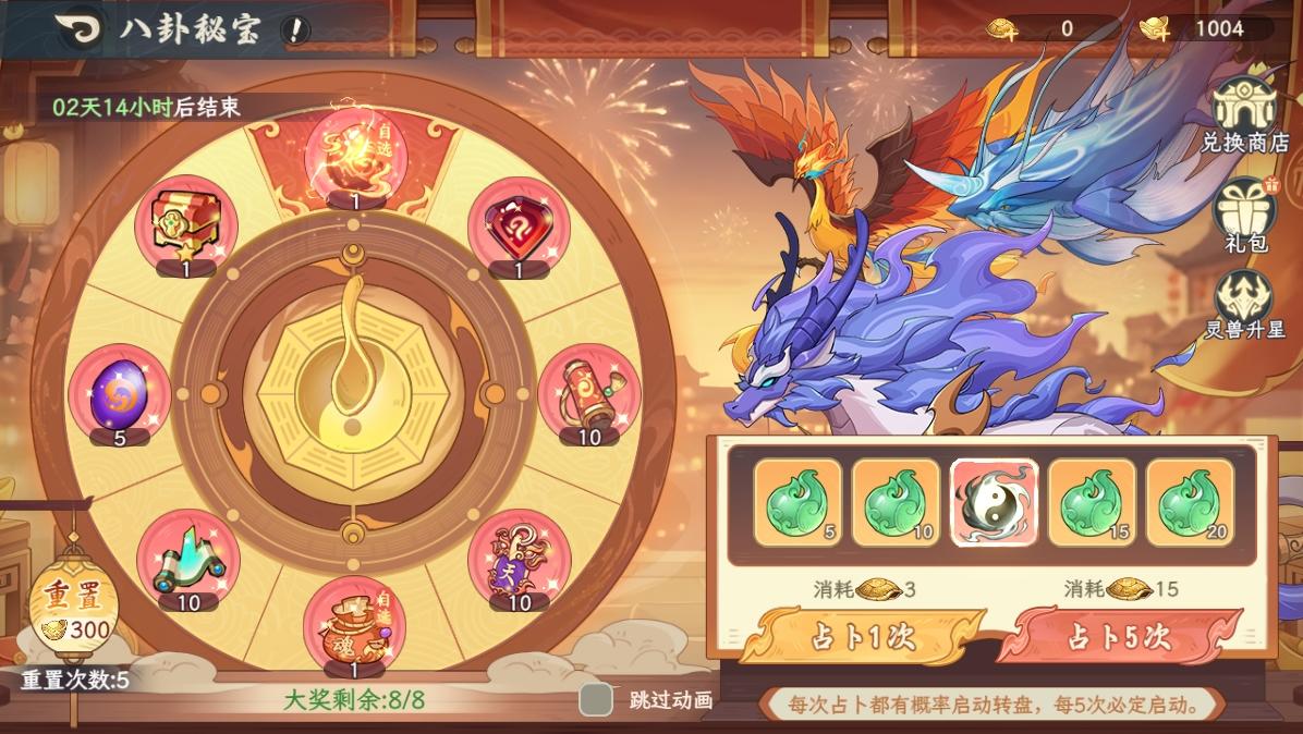 每次占卜的奖励不放回,直到抽到【阴阳之气】触发转盘并刷新占卜奖池;