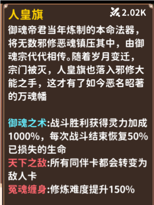 人皇旗,其实本身比起万魂幡没有多出什么,而且还会把你的[屠城]选项删除,只能选择[除恶]