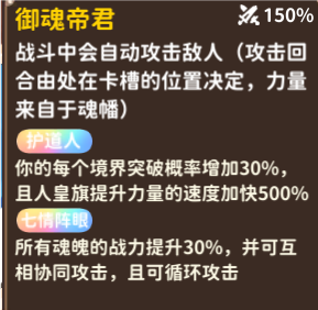 (特别注意,御魂帝君不是绑定的,是可以扔的,所以小心点别给帝君扔了